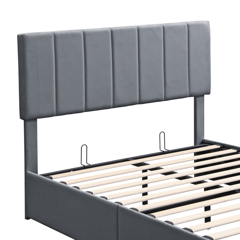 • Hydraulic Storage System: Smooth lift mechanism reveals spacious under-bed storage.