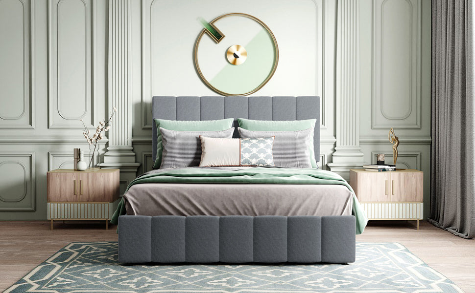 Experience Stylish Comfort with Our Full-Size Upholstered Platform Bed with Hydraulic Storage
