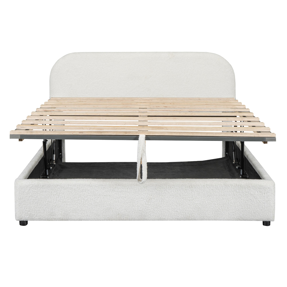 Queen Teddy Fleece Upholstered Platform Bed With Hydraulic Storage