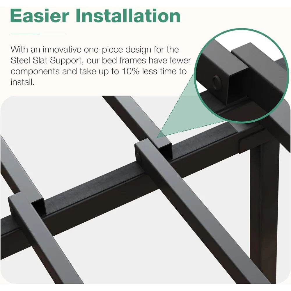 Durable Material: Crafted from high-quality metal materials, the bed frame is built to last. The sleek and stylish matte black finish adds a touch of elegance to bedroom decor while ensuring long-lasting durability.