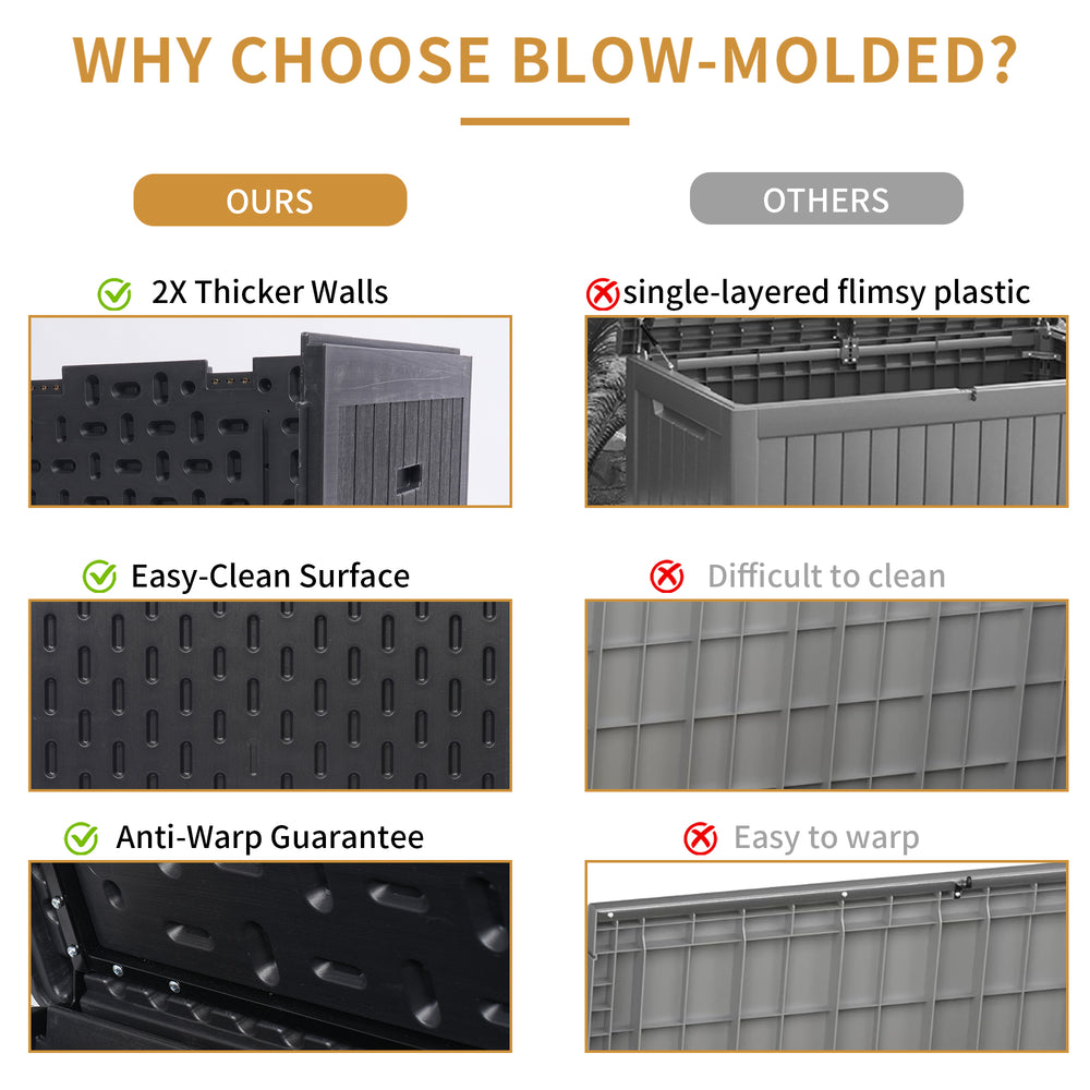 • 260-gallon resin deck box offers extra-large storage capacity