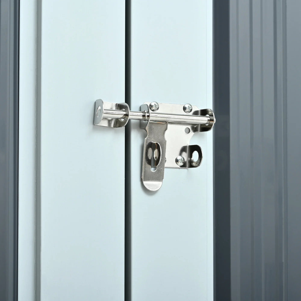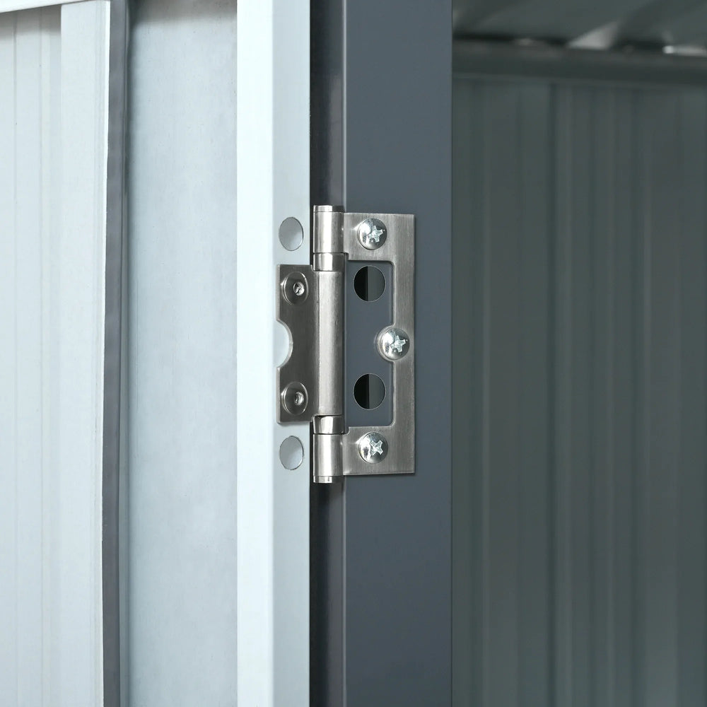 Keep your yard neat and organized with this spacious 6x8ft (71.6"x63"x88.5") metal storage shed, expertly designed for garden and outdoor storage needs. Crafted from galvanized steel, this shed offers exceptional rust and corrosion resistance, ensuring durability through rain, snow, and sun. The double wide doors with lockable handles provide secure, easy access for bulky tools, lawn equipment, or bicycles. Its sloped roof prevents water pooling, while built-in ventilation minimizes moisture buildup, protecting your belongings from damage. Ideal for any backyard, patio, or driveway, this antique dark grey shed combines rugged construction with practical design. Elevate your outdoor storage solution today and enjoy a clutter-free, well-maintained space.