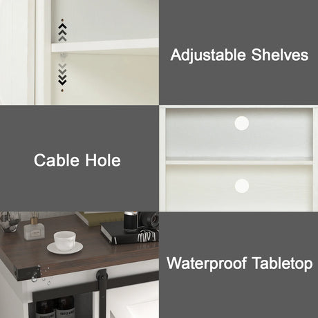 Farmhouse Wooden Sliding Barn Door Coffee Bar Cabinet