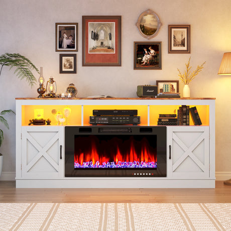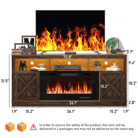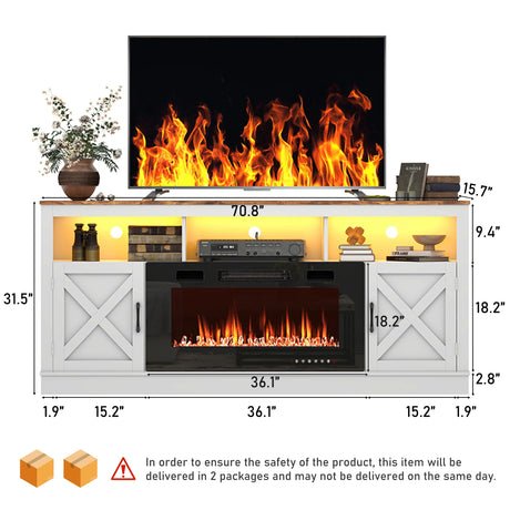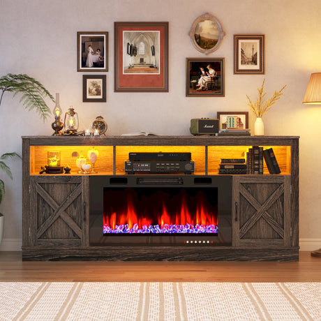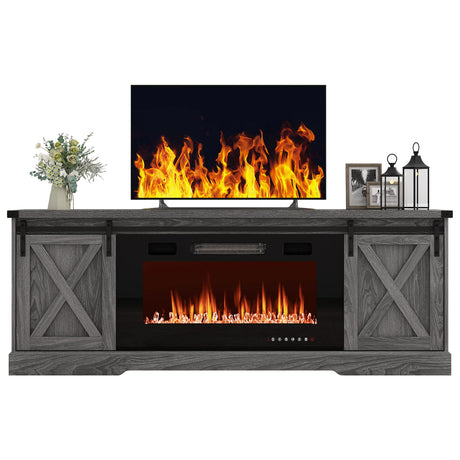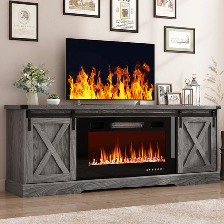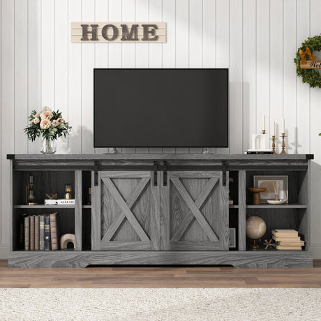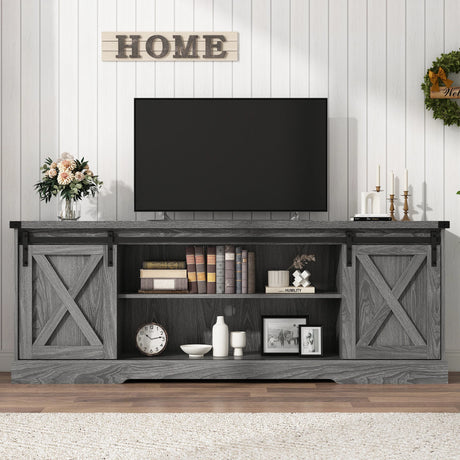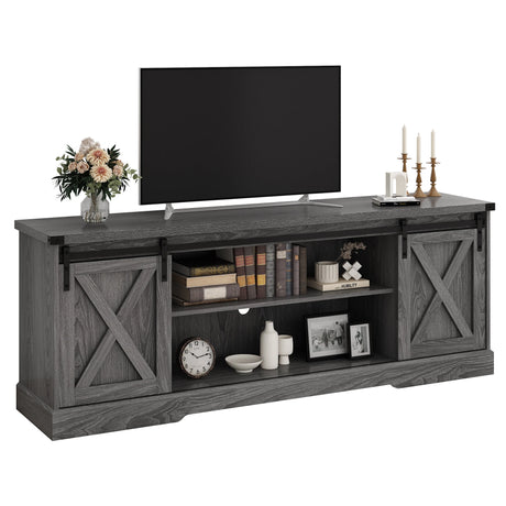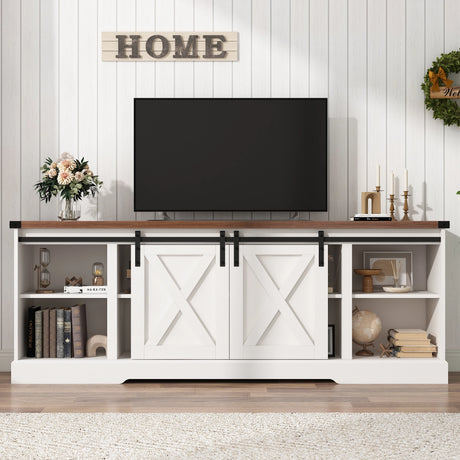 Farmhouse Wooden TV Stand With Sliding Barn Doors