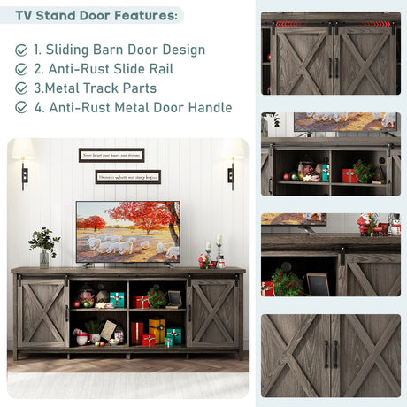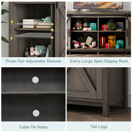 Farmhouse Wood Sliding Barn Door TV Stand Cabinet
