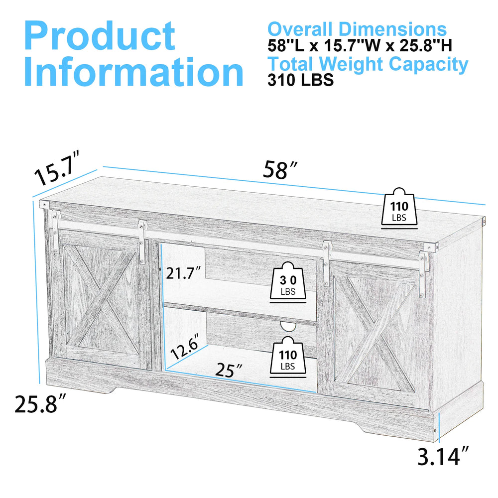 Enhance Your Living Room with Our Farmhouse TV Stand for TVs up to 65 Inches