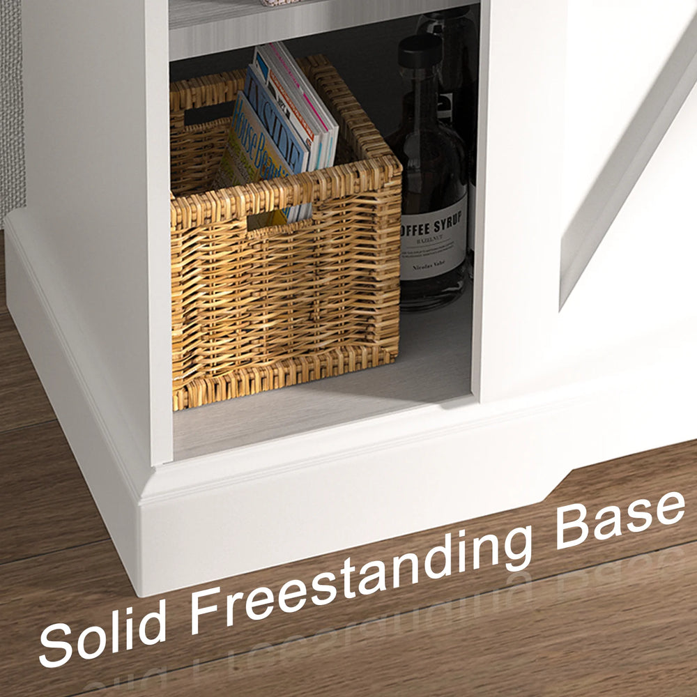 Farmhouse Wooden Sliding Barn Door Coffee Bar Cabinet