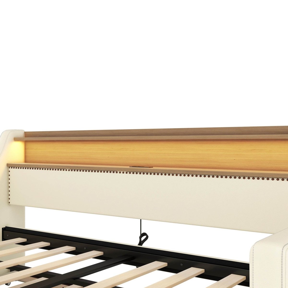 Twin PU Leather Daybed With Trundle Charging Station And LED Light