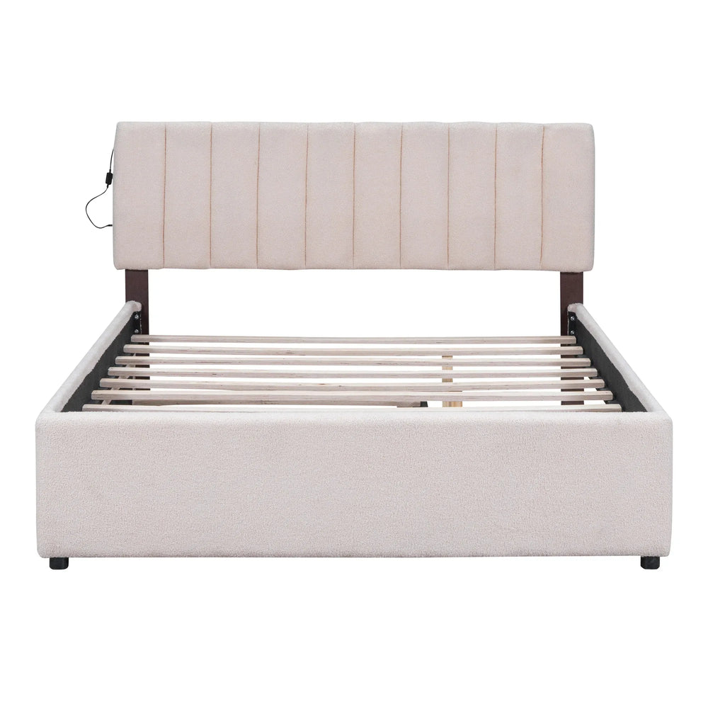 Queen Teddy Fleece Upholstered Platform Bed With Trundle