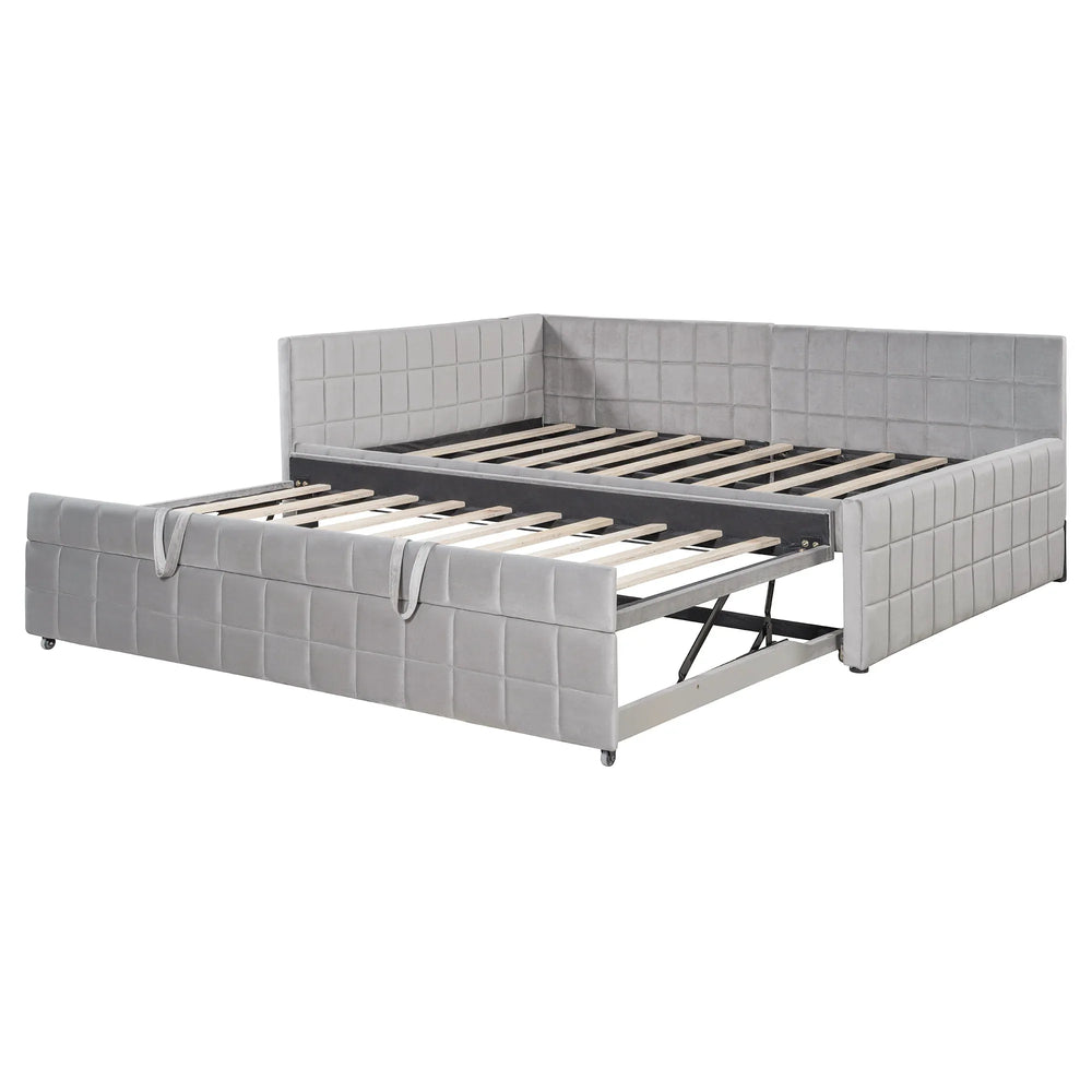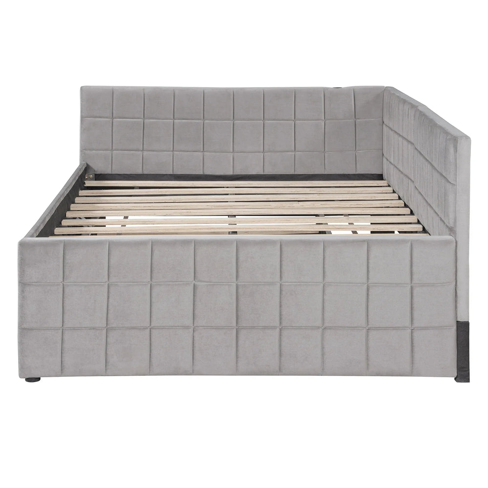 Full Upholstered L-Shaped Daybed With Twin Trundle USB Ports