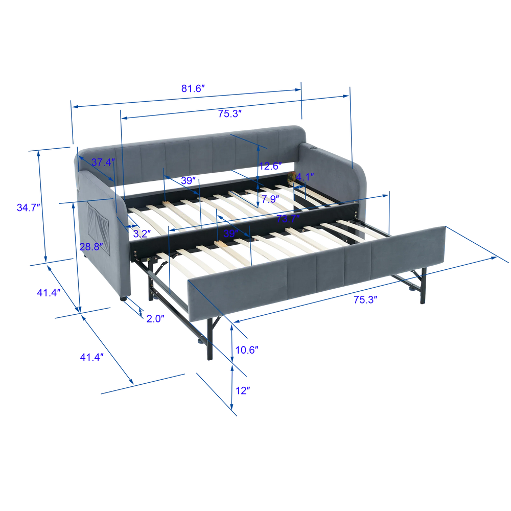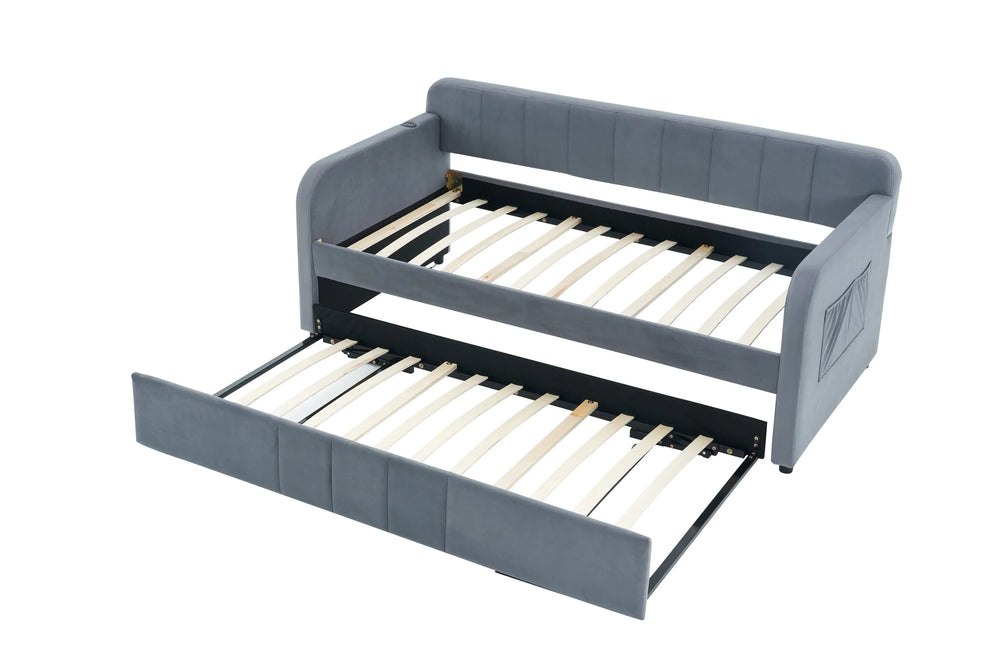 Twin Velvet Upholstered Daybed Frame With Trundle