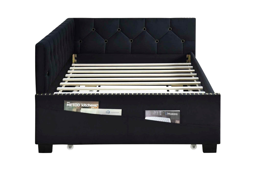 Black Velvet Upholstered Twin Size Daybed Frame With Trundle - Omega Lifestyles