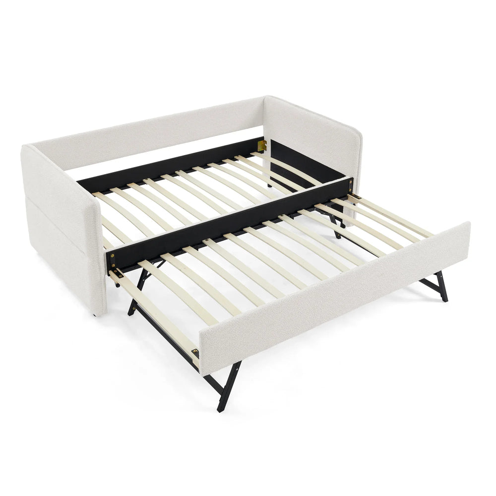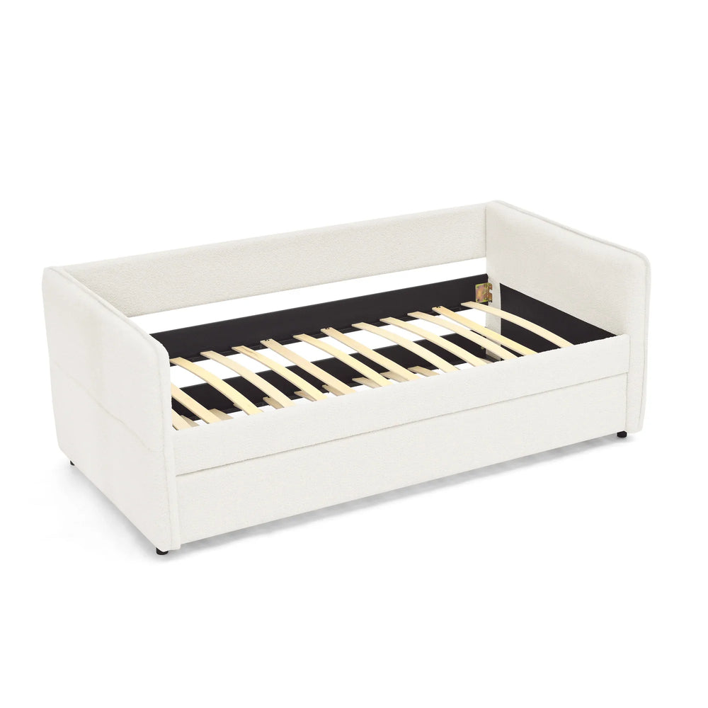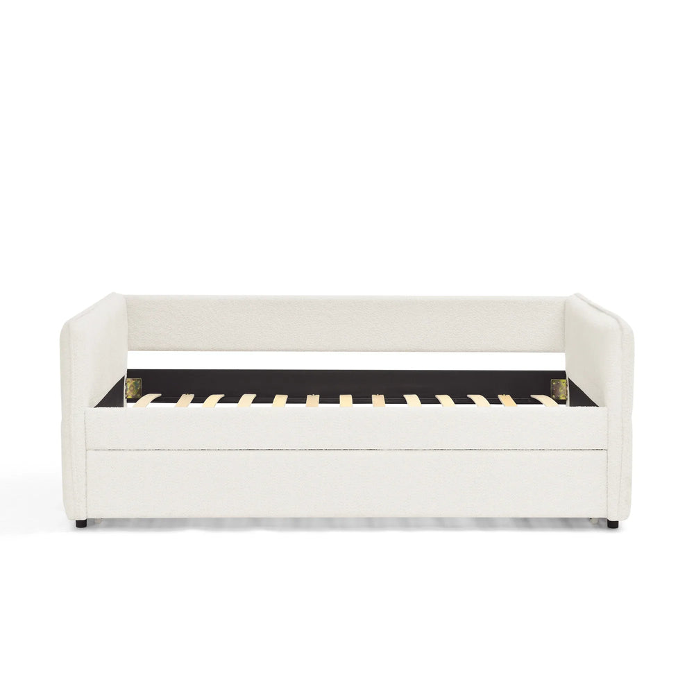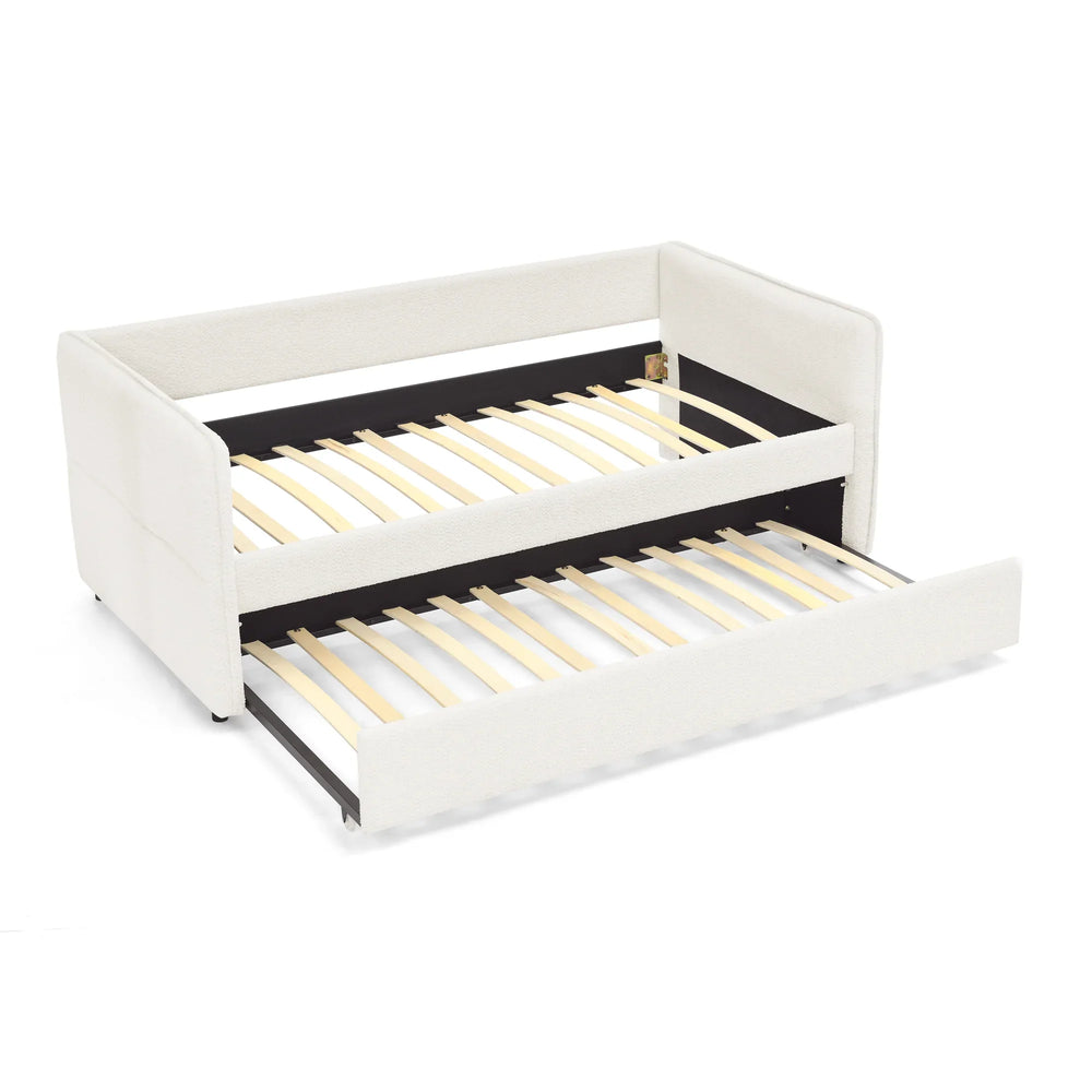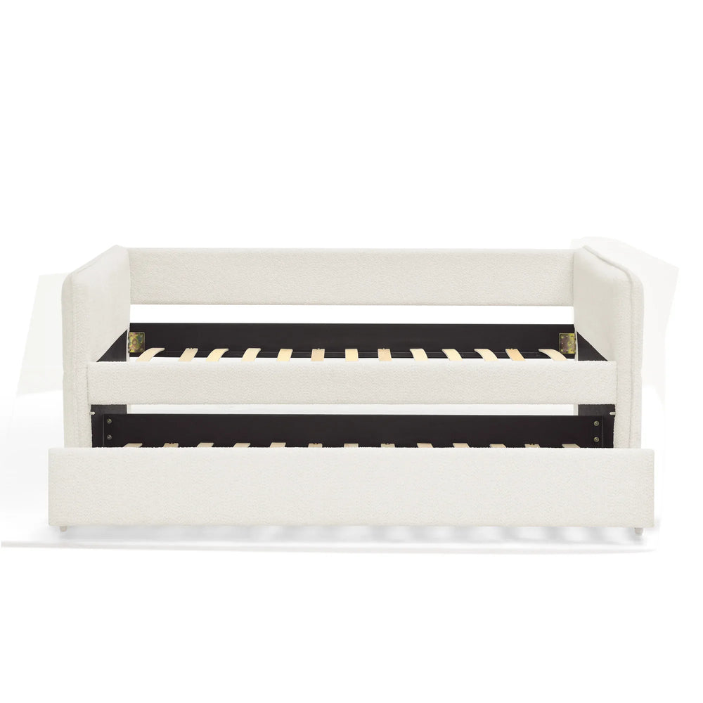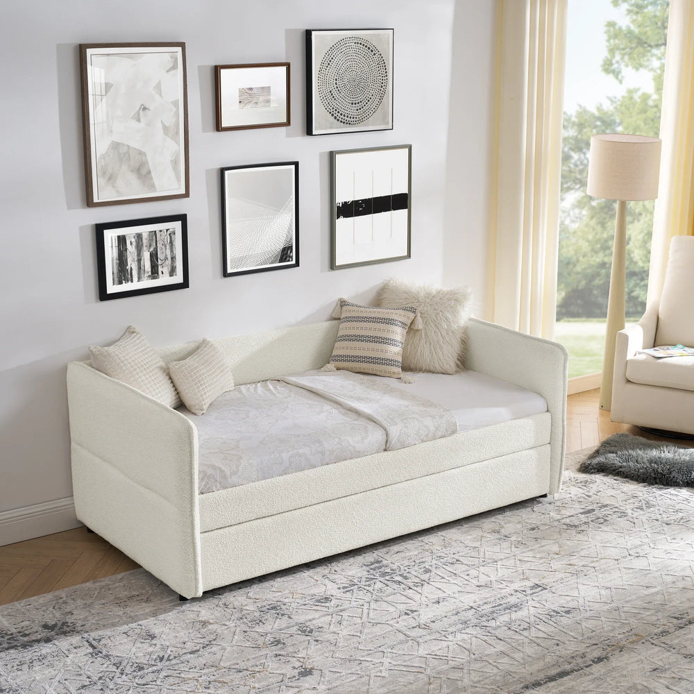 Twin Upholstered Boucle Daybed With Functional Trundle