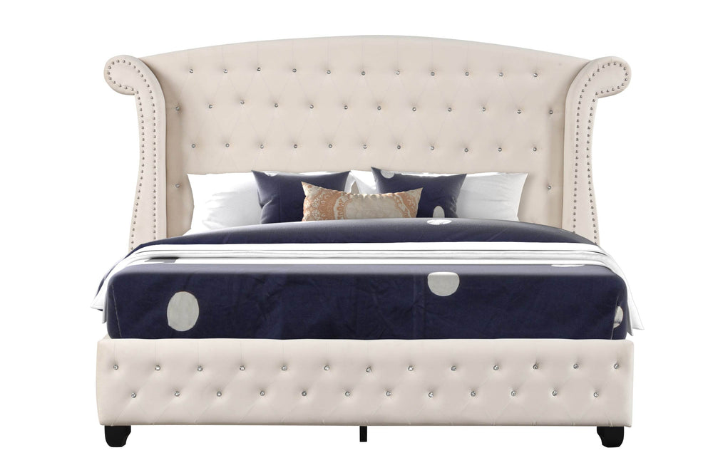 The Sophia Queen Bed in Cream brings together contemporary design and timeless elegance to transform your bedroom into a stylish retreat. Crafted from durable wood and upholstered in soft velvet, this bed features a striking crystal tufted headboard that adds a touch of glam and sophistication. Its clean lines and modern silhouette offer a perfect balance between classic charm and current trends. Designed to be sturdy and supportive, the bed frame does not require a box spring, providing easy setup without sacrificing comfort. Available in multiple sizes to complement your space, the Sophia Bed is ideal for anyone looking to enhance their bedroom’s ambiance with refined style and lasting quality. Elevate your relaxation and sleep experience today.