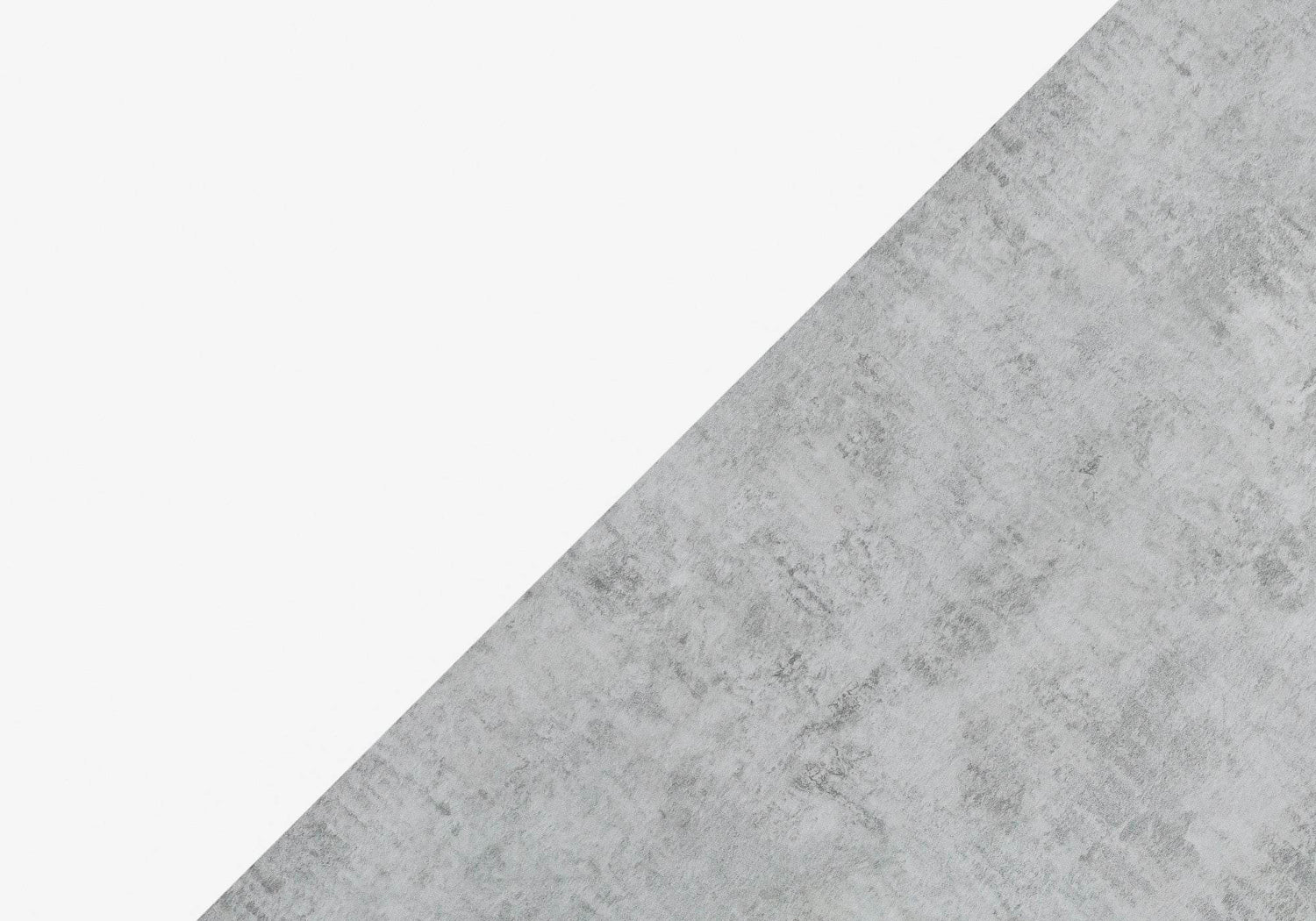 • Contemporary Industrial Design: White and grey cement-look laminate with black metal angled legs.