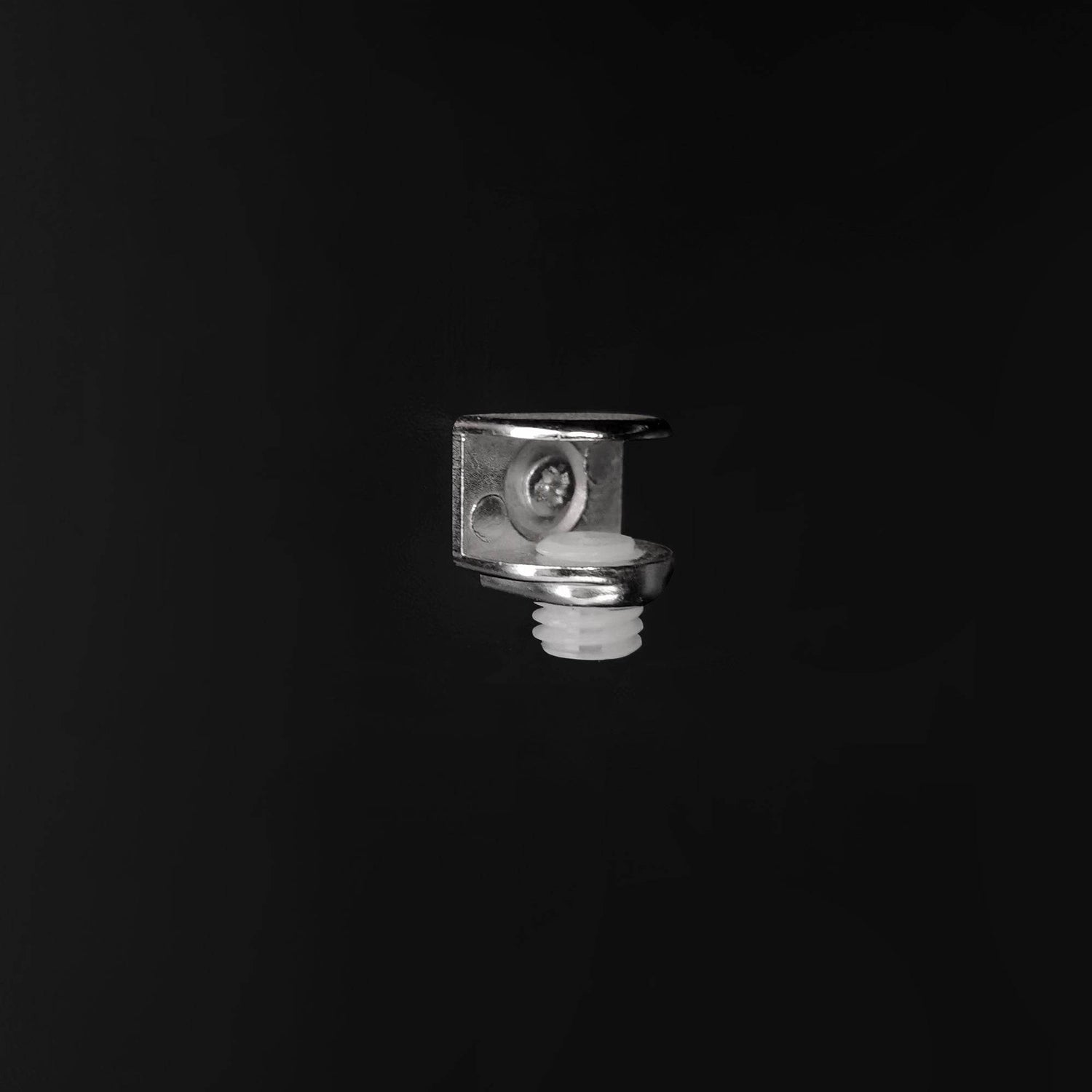 - Two Tempered Glass Shelves showcase and organize media devices.