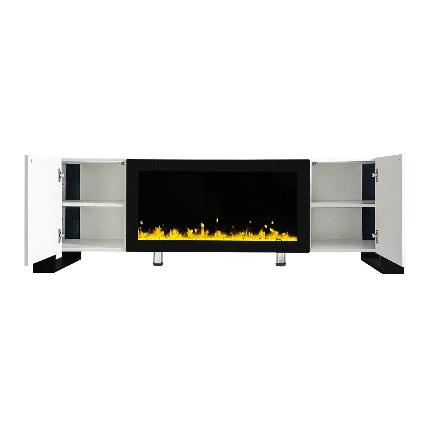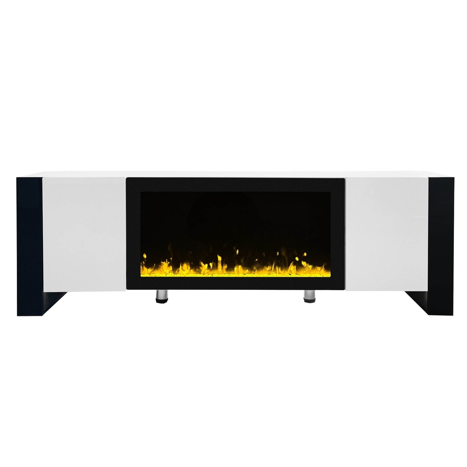 Modern TV Stand with a 34.2' non-heating electric fireplace offers visual comfort and a romantic ambiance. Featuring minimalist design, high-gloss MDF construction, and two spacious cabinets for organized storage in primary living spaces. Safe and easy to clean.
