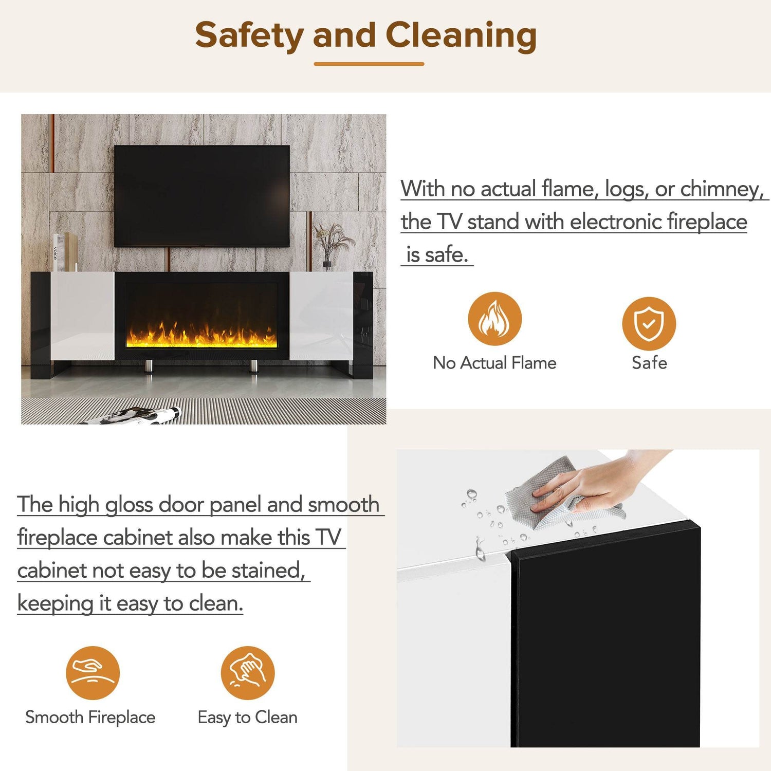 - Safe and Easy to Clean: No actual flame and smooth surfaces resist stains and dust.