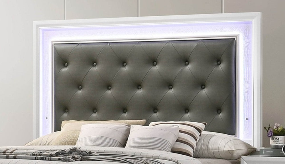 Elevate Your Bedroom with the Modern White Crocodile Skin Finish LED Panel Bed