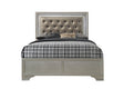 Elevate your bedroom style with this modern full-size bed featuring a striking champagne crocodile skin textured finish. Crafted from solid wood, the durable frame offers lasting stability and support. The upholstered headboard, adorned with faux diamond tufting and crystal inlays, creates a luxurious seating spot perfect for reading or relaxing. Integrated beige and white LED lights provide a soft, ambient glow, highlighting the bed’s contemporary glam design and setting a soothing mood for your space. Slats and support legs are included for easy setup and strong mattress foundation. This statement piece blends functionality with exquisite artistry to transform your bedroom into a glamorous retreat. Upgrade your sleeping sanctuary today.