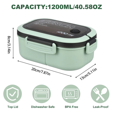 Stackable Leak-Proof 1200ML Bento Lunch Box With Tableware