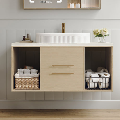 Wall-Mounted Floating Bathroom Vanity With Oval Ceramic Sink