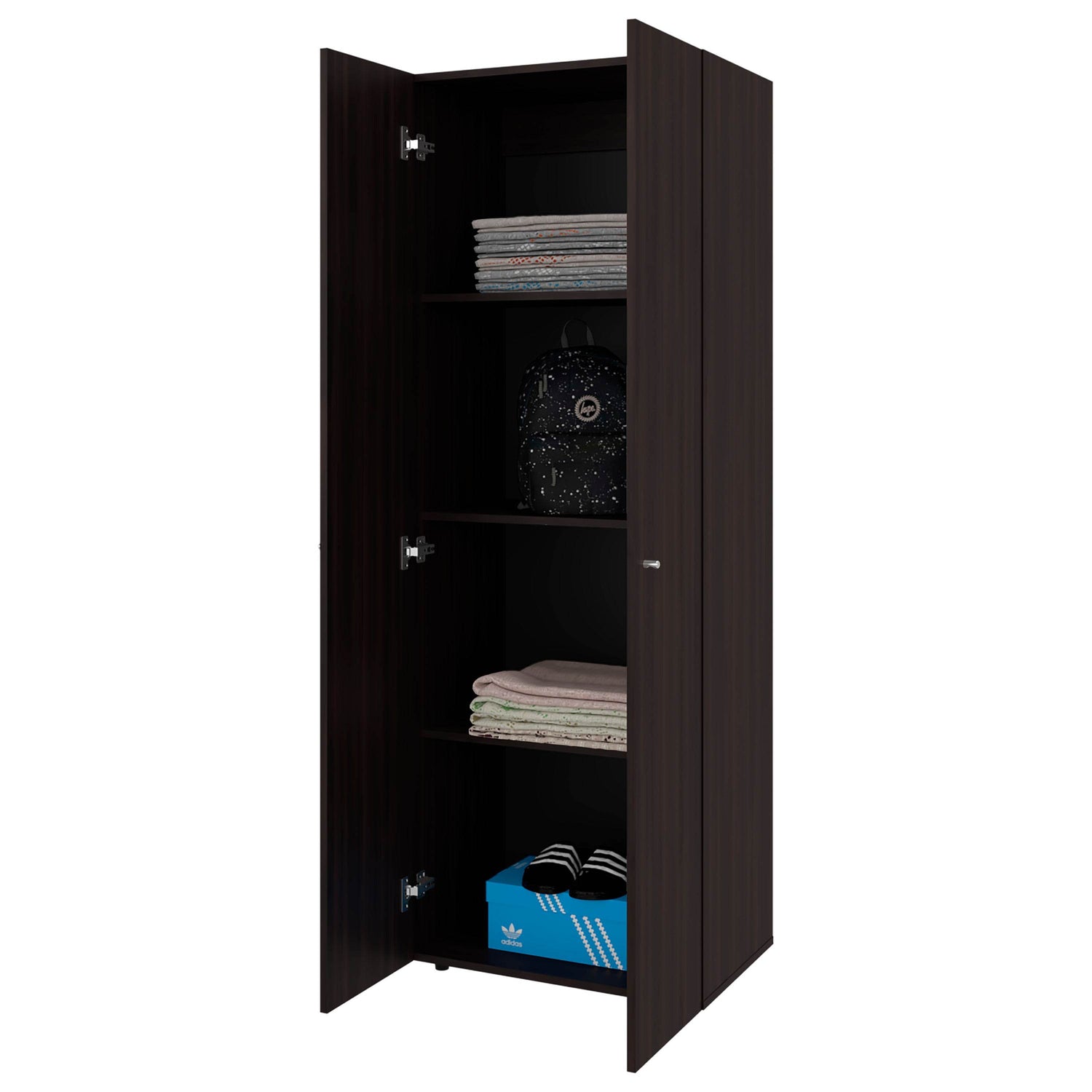 Maximize your living space with this stylish armoire featuring a modern walnut and black wengue finish. Designed with 2 doors and 4 spacious internal shelves, it’s perfect for organizing clothes, linens, or accessories while maintaining a clean, contemporary look. Its tall yet compact profile fits comfortably in bedrooms, closets, or hallways without overwhelming your space. Crafted from durable engineered wood with solid wood and MDF fillers, this armoire offers lasting stability and elegant appeal. Ready-to-assemble design makes setup quick and hassle-free. Elevate your home organization and style today.