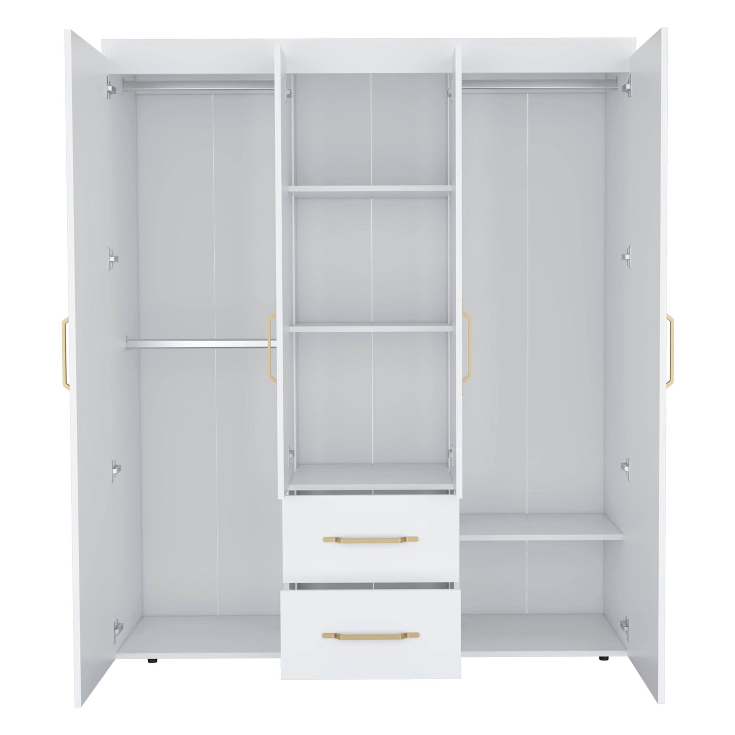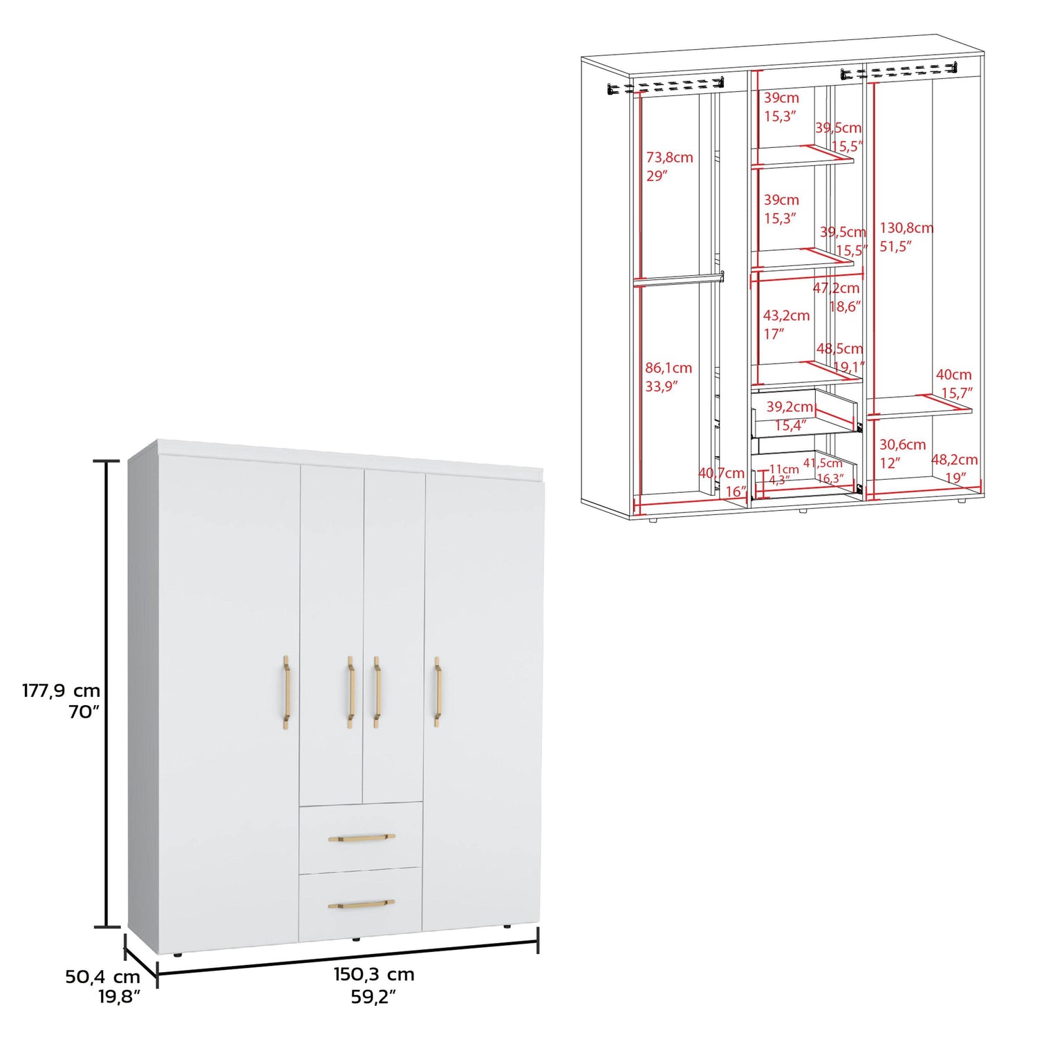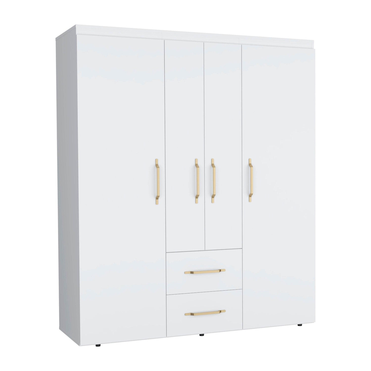 Keep your bedroom clutter-free and stylish with the Bariloche Wardrobe, featuring a smart multi-section design tailored for comprehensive storage. This modern white wardrobe combines ample hanging space with adjustable shelves and two convenient drawers, making it effortless to organize everything from clothes to accessories. Crafted from durable particle board, it provides sturdy support while maintaining a sleek look. Its spacious compartments allow easy sorting and quick access, perfect for optimizing your daily routine. The clean white finish and metal handles add a contemporary touch that complements any bedroom decor. At nearly 70 inches tall and over 59 inches wide, this wardrobe offers substantial storage without overwhelming your space. Elevate your bedroom storage solutions today with this efficient and elegant wardrobe.