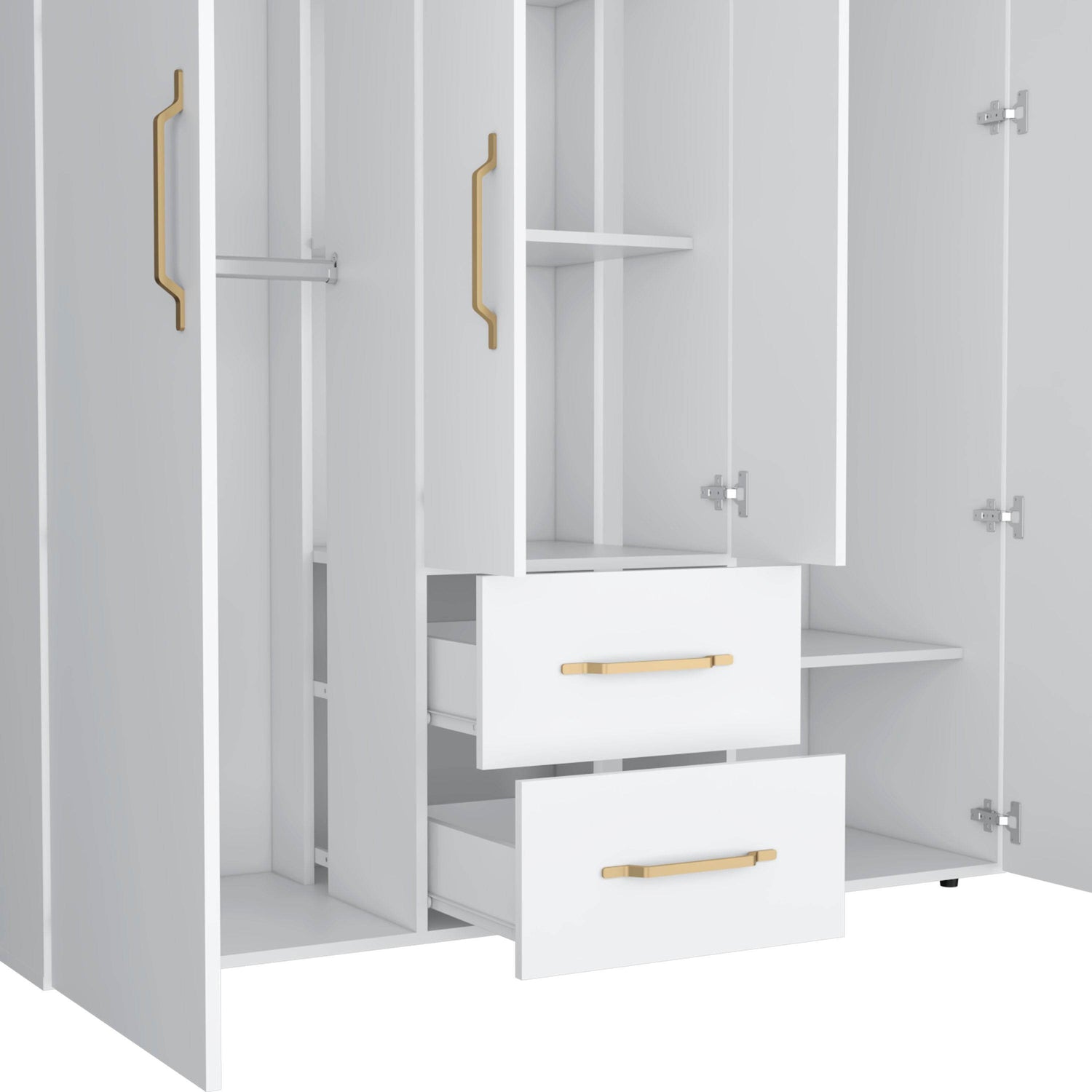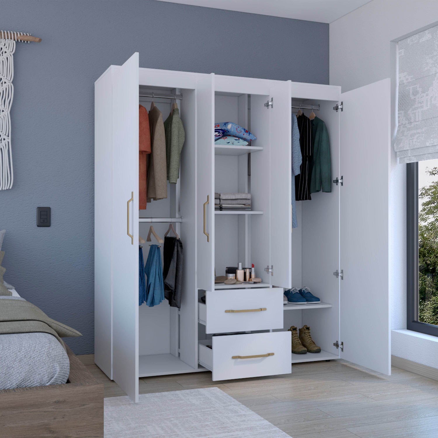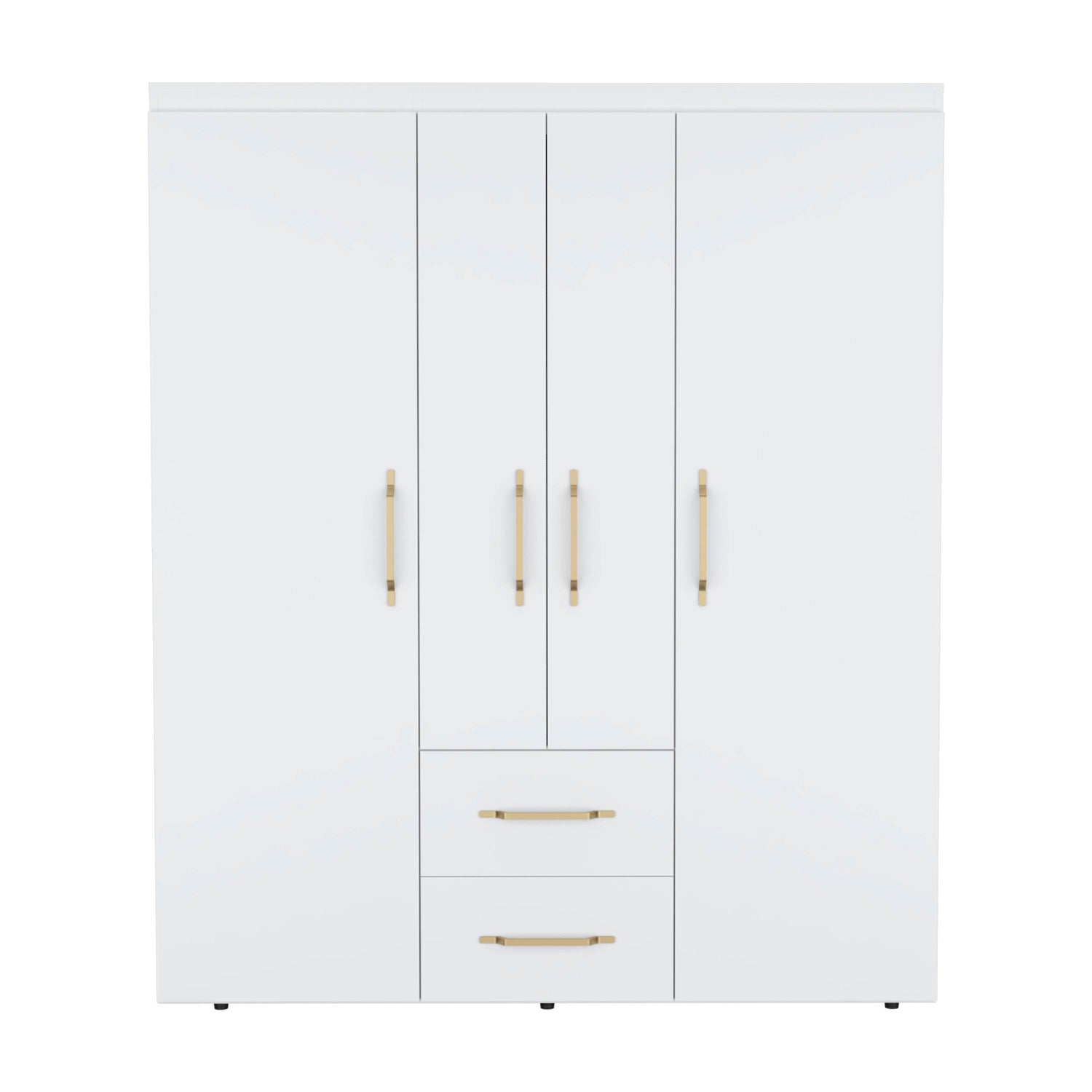 Keep your bedroom clutter-free and stylish with the Bariloche Wardrobe, featuring a smart multi-section design tailored for comprehensive storage. This modern white wardrobe combines ample hanging space with adjustable shelves and two convenient drawers, making it effortless to organize everything from clothes to accessories. Crafted from durable particle board, it provides sturdy support while maintaining a sleek look. Its spacious compartments allow easy sorting and quick access, perfect for optimizing your daily routine. The clean white finish and metal handles add a contemporary touch that complements any bedroom decor. At nearly 70 inches tall and over 59 inches wide, this wardrobe offers substantial storage without overwhelming your space. Elevate your bedroom storage solutions today with this efficient and elegant wardrobe.