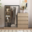 Natural MDF Metal Wardrobe With Drawers And Shelves