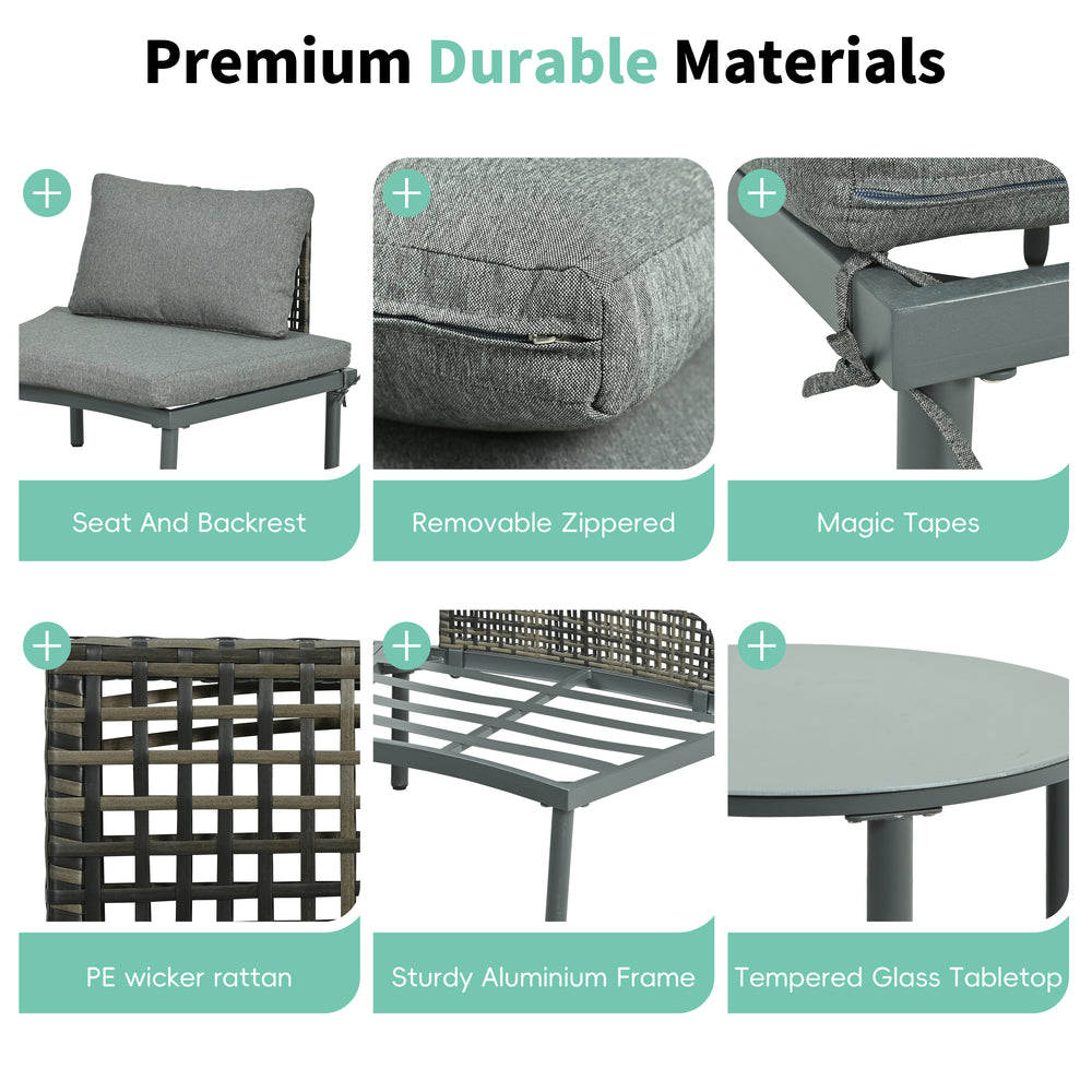 - High-Quality PE Wicker Rattan: Ensures lasting outdoor durability with a contemporary gray finish.