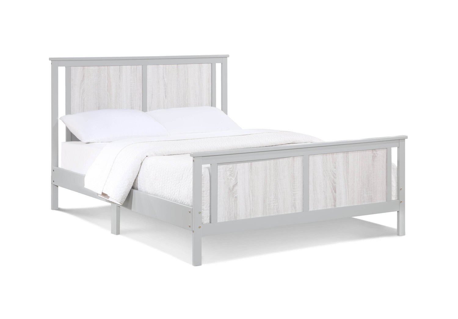 The Connelly Full Size Bed blends classic design with modern functionality to create a centerpiece for any bedroom. Crafted from solid wood with a sophisticated gray finish, this bed offers durability and an elegant aesthetic. Its unique reversible panel headboard lets you choose between decorative two-tone veneers for a contemporary look or a solid paint finish for a traditional style—perfect for updating your space without buying a new bed. Measuring 77 inches long, 56.75 inches wide, and 42.5 inches tall, this full bed provides ample support and comfort. The sturdy construction ensures lasting performance, while the split panel design adds subtle charm. Elevate your bedroom décor and enjoy versatile style that lasts.