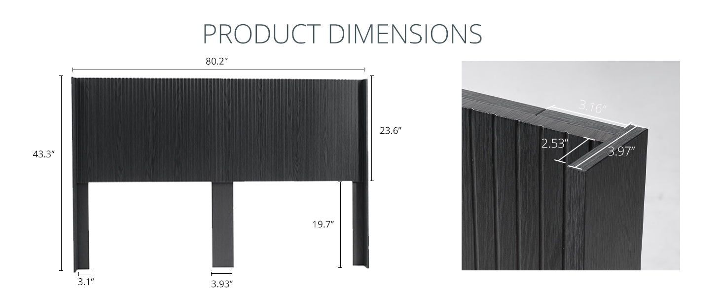 Enhance your bedroom’s style and comfort with this striking black oak wood headboard, crafted from solid wood and MDF for durability and a premium feel. Featuring an elegant real woodgrain texture and a contemporary 3D fluted carving design, it beautifully blends classic farmhouse charm with modern boho flair. Measuring 80.2 inches wide and 43.3 inches high, this wall-mounted headboard adds a sophisticated focal point to your king-size bed while providing sturdy support and a comfortable backrest. Its slim 3.9-inch profile keeps your space sleek and open. Easy to assemble and built to last at 68.4 pounds, it’s the perfect upgrade to refresh your bedroom decor. Bring timeless craftsmanship and stylish design into your home—elevate your relaxation today.