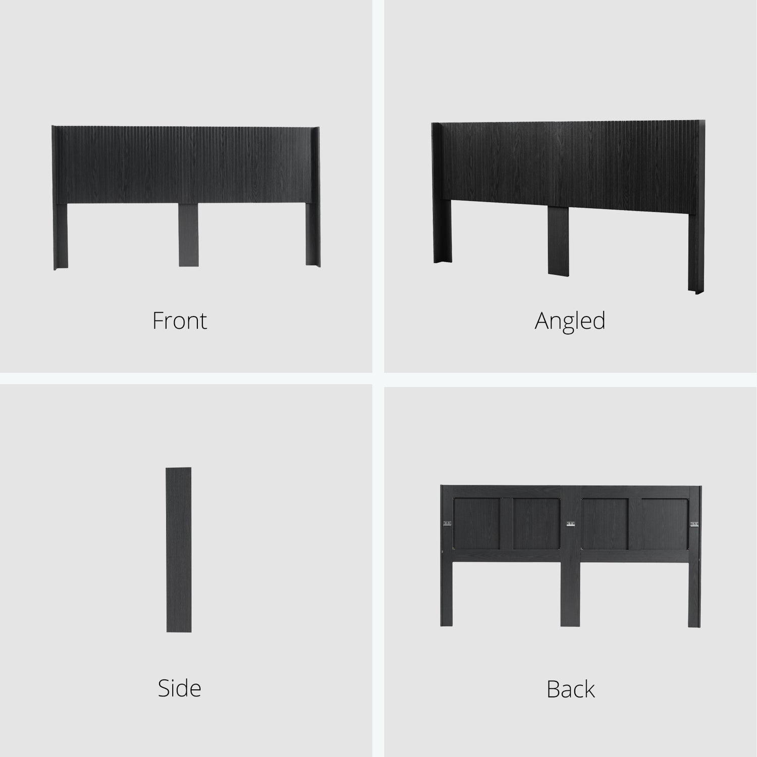 Black Woodgrain headboard features solid wood and MDF construction with a contemporary 3D carving design, offering a sturdy, stylish backrest that complements various bed styles. Measures 80.20 by 43.30 inches, easy to assemble for enhanced bedroom comfort.