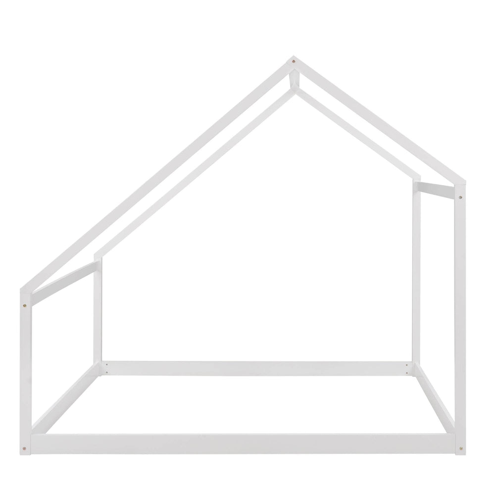 Designed to inspire comfort and creativity, this full size wooden house bed is an ideal centerpiece for your child's bedroom. Crafted from durable solid pinewood with a clean white finish, it offers a sturdy and stable frame that ensures lasting use. The semi-enclosed house design fosters a comforting atmosphere that promotes restful sleep while maintaining excellent air circulation. Its open, spacious layout invites personalization, allowing your child to decorate and make the space their own. Whether placed directly on the floor for a bohemian look or set up over a box spring, this versatile bed frame adapts to your style and needs. Assembly is straightforward, making it easy to bring this charming and functional piece into your home. Elevate your child’s sleeping environment today.