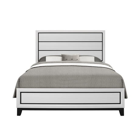 King Contemporary White Panel Bed Frame With Padded Headboard