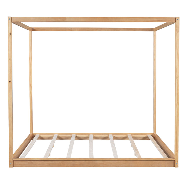 King Size Natural Pine Wood Canopy Platform Bed