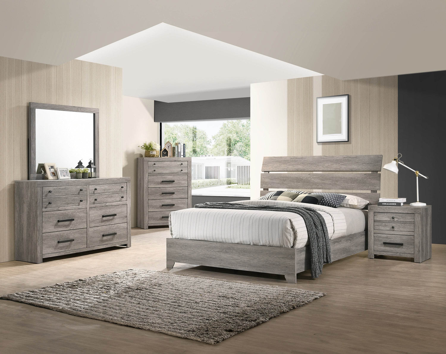 • Weathered gray finish brings calming rustic charm to your bedroom