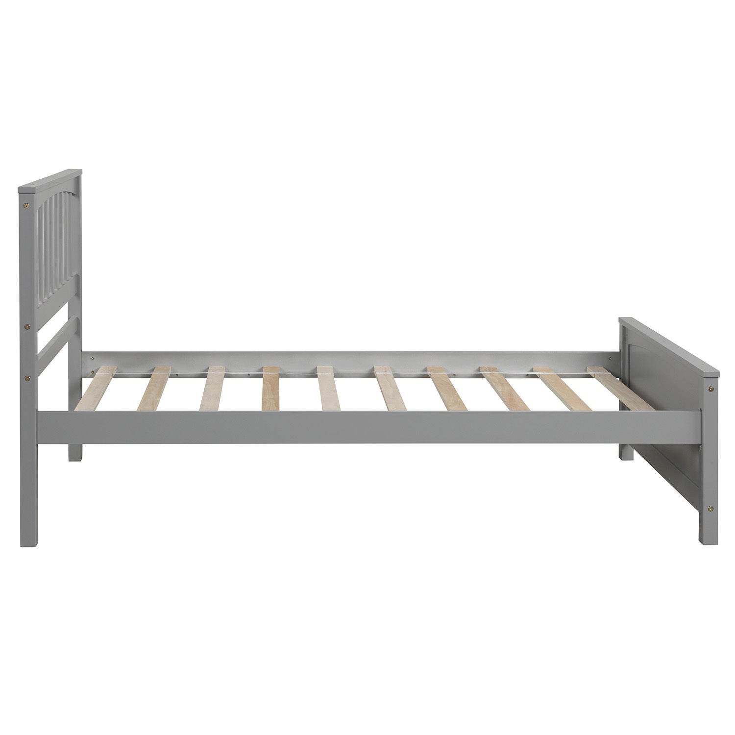 Upgrade your bedroom with this Classic Gray Wood Platform Bed, thoughtfully crafted for both style and durability. Featuring a solid pine wood frame in a subtle gray finish, this bed offers sturdy support with 10 reinforced slats—no box spring needed. The clean, classic design with a headboard and footboard complements a wide range of decor styles, making it a versatile centerpiece for any room. Its elevated design encourages airflow around your mattress, promoting freshness and longevity. Lightweight yet durable, it’s easy to assemble and ideal for creating a cozy, inviting sleep space. Perfect for twin mattresses up to 8 inches thick, this platform bed balances practical function with timeless appeal. Elevate your bedroom space today with this reliable and elegant wood platform bed.