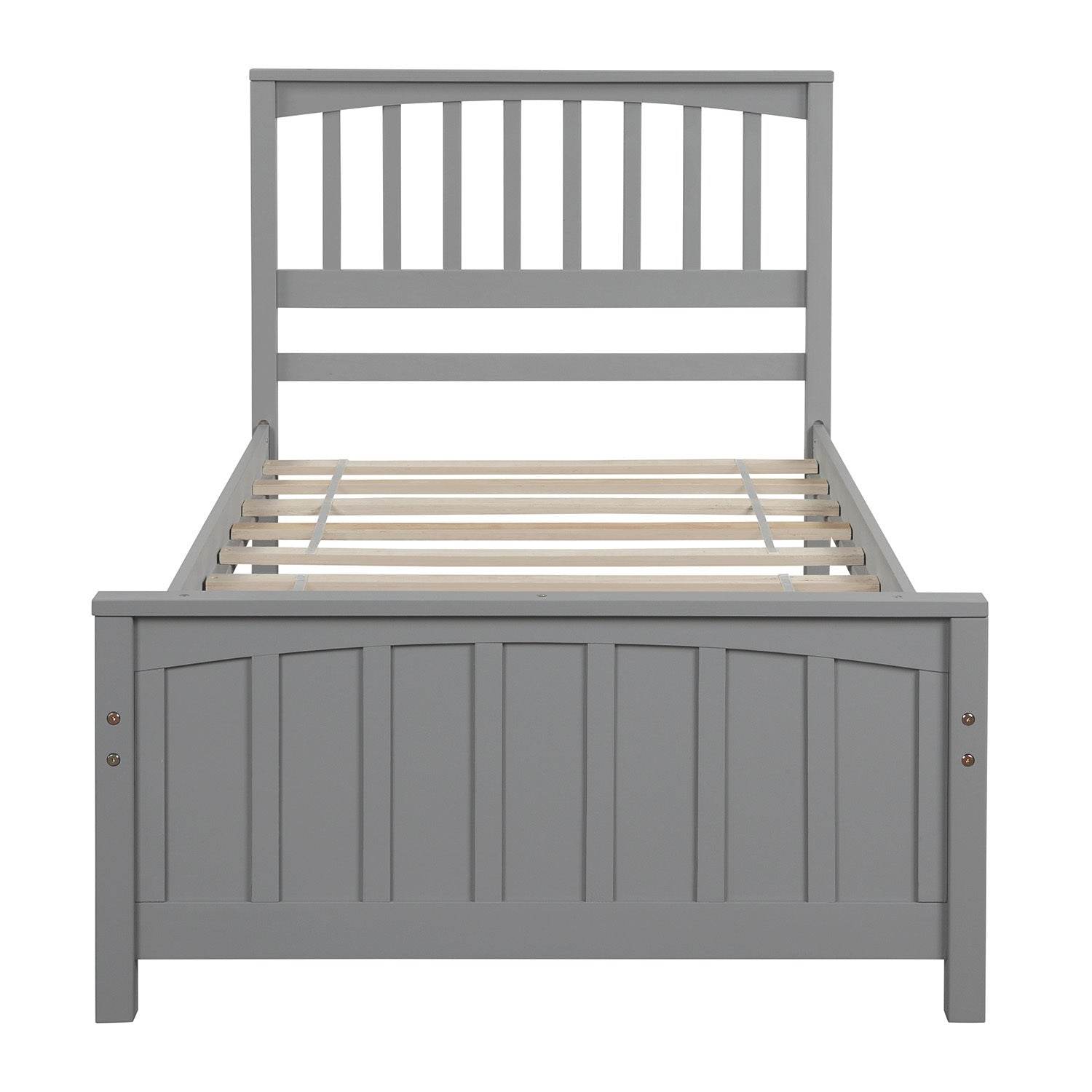 Twin Solid Wood Gray Platform Bed With Headboard And Footboard
