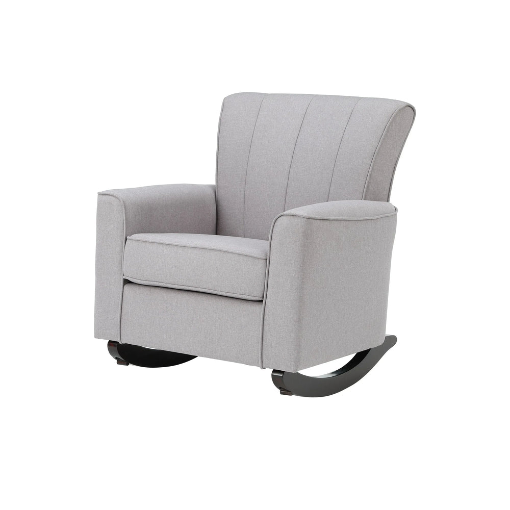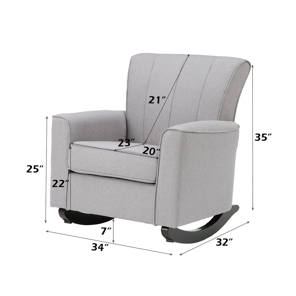Light Gray Linen Wooden Frame Rocking Chair - Omega Lifestyles