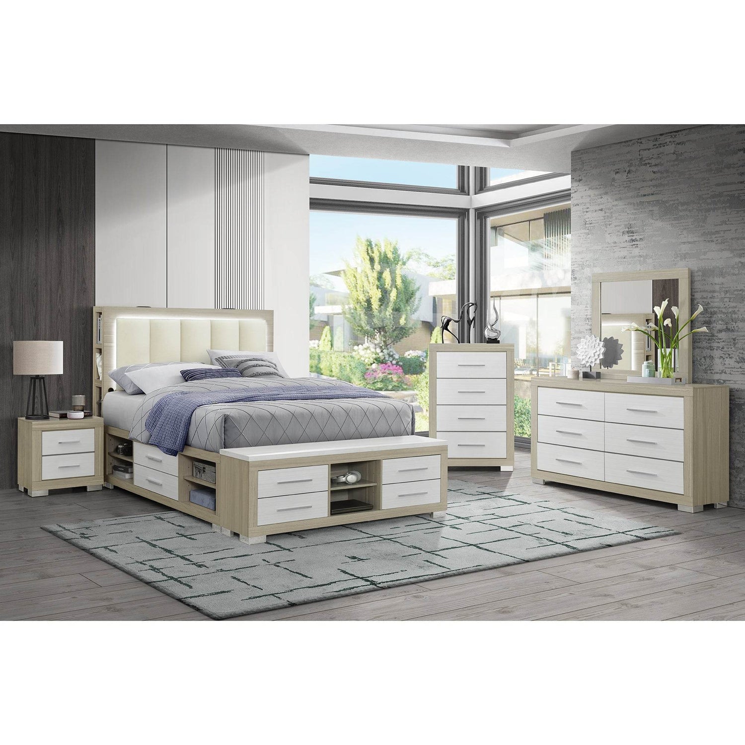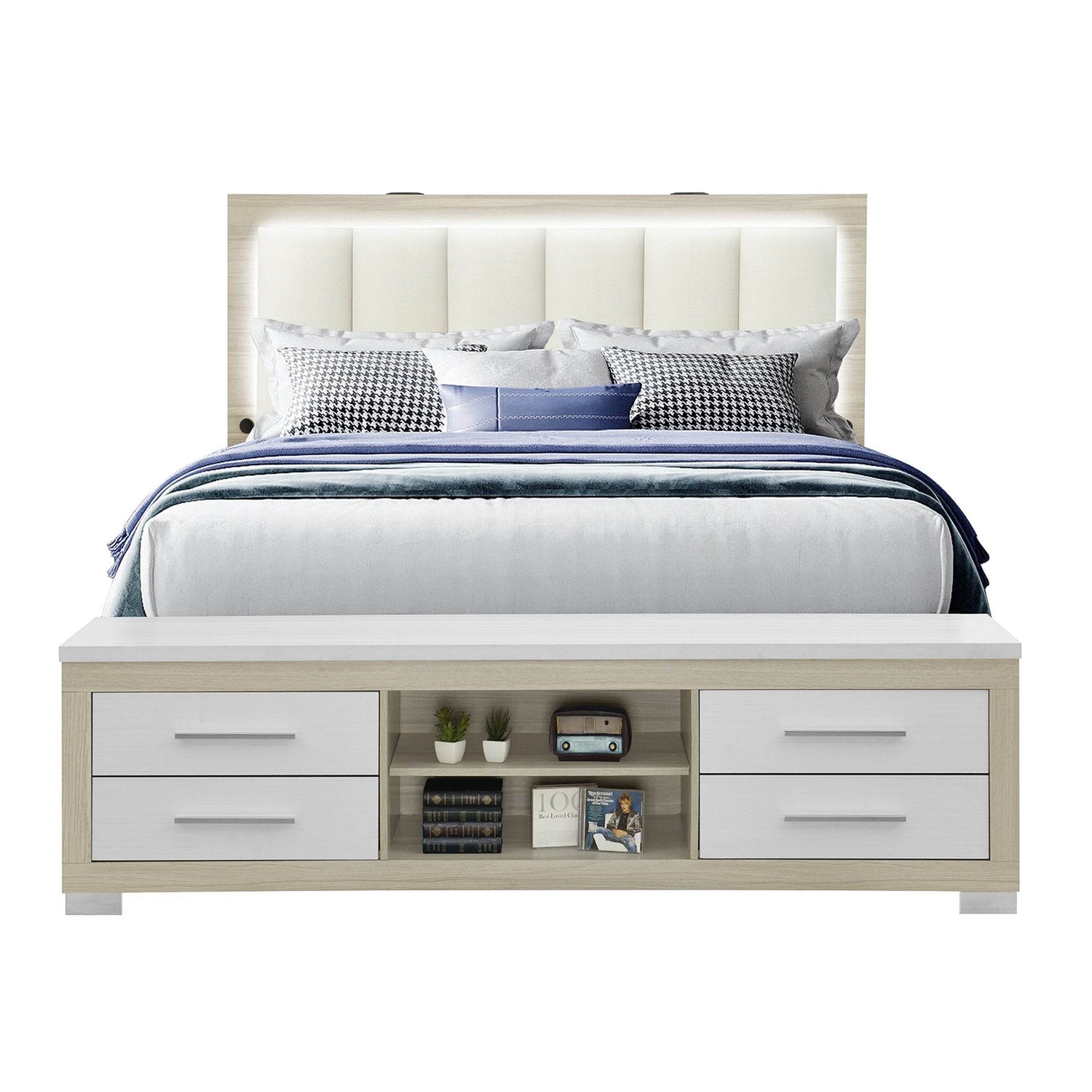 Experience Modern Elegance and Smart Storage with the Natural-White King Bed Frame