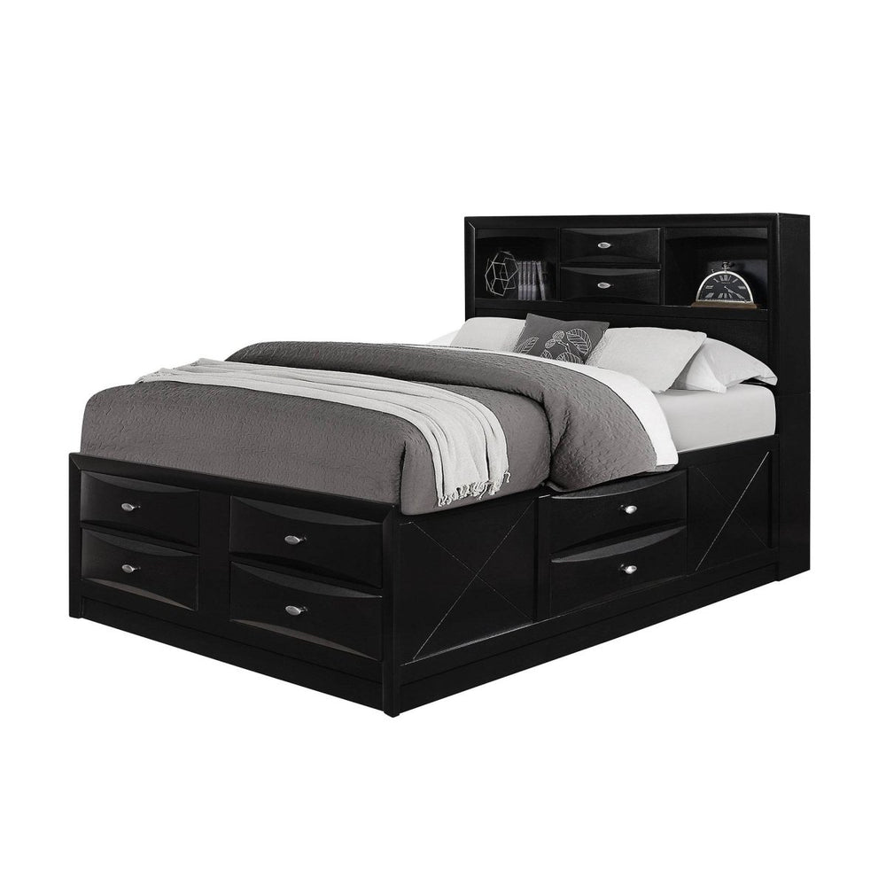 Modern Black Wood Bookcase King Bed Frame With Storage Drawers - Omega Lifestyles