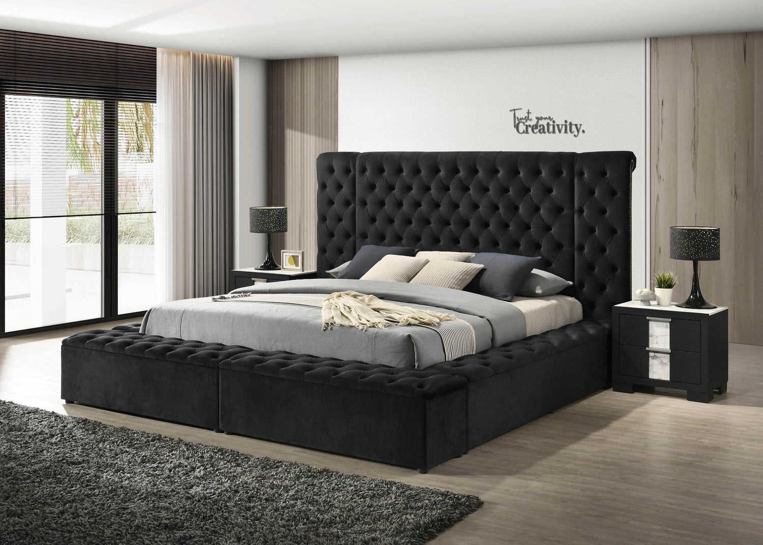 Experience Elegant Comfort with Our Black Velvet Tufted Queen Bed Frame