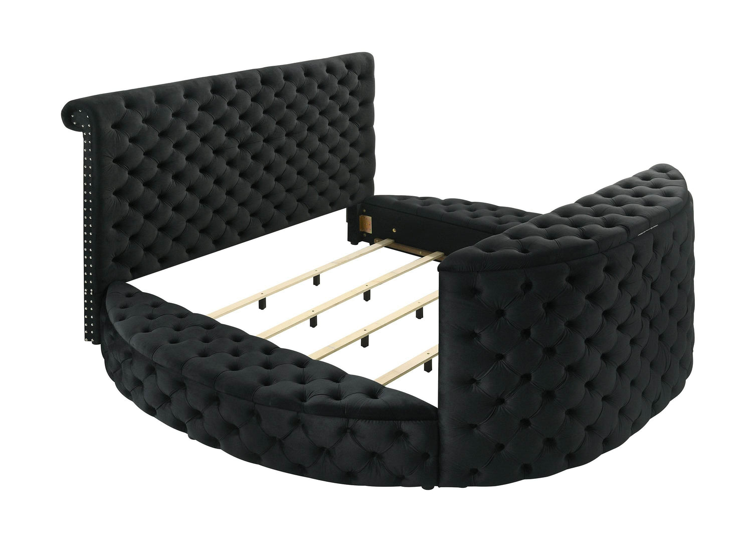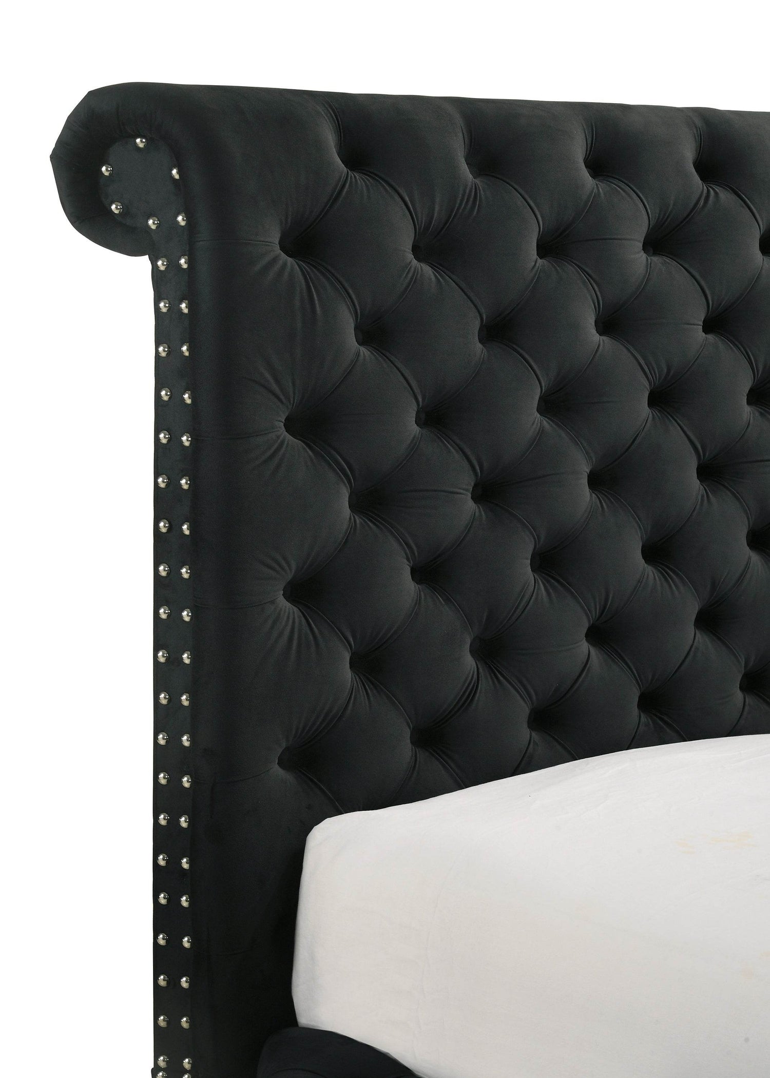 Experience Modern Elegance with the King Size Black Velvet Upholstered Bed