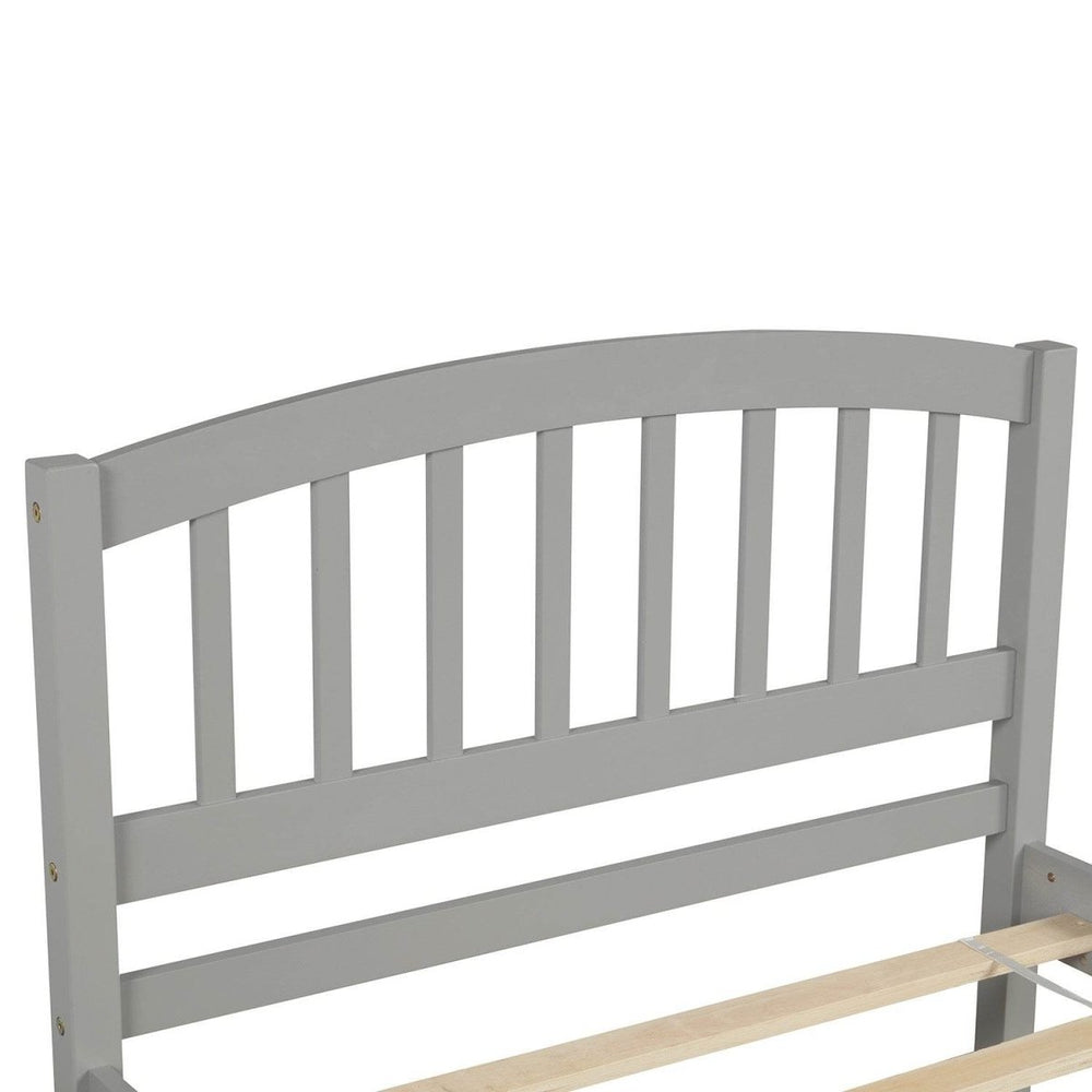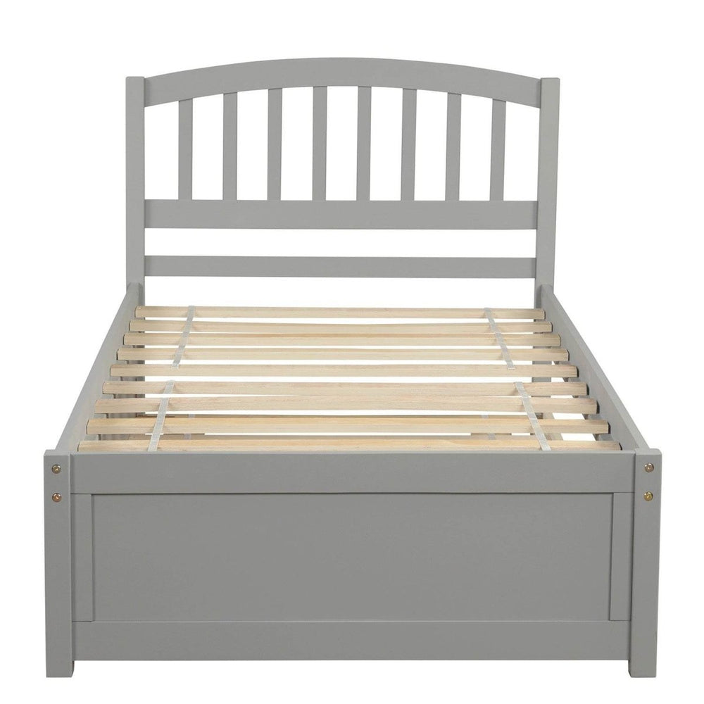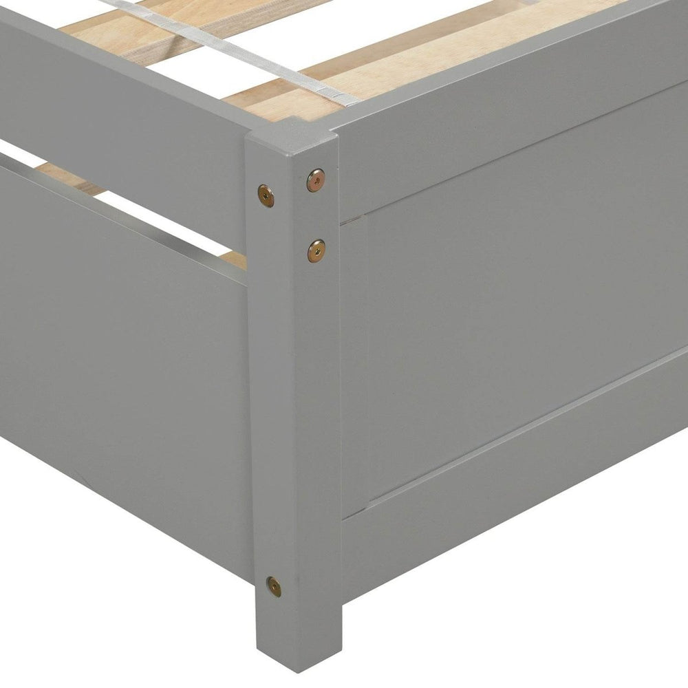 Enhance your bedroom with this stylish Twin Platform Bed featuring a convenient trundle for extra sleeping space. Crafted from solid pinewood with durable plywood and MDF accents, this bed frame offers a sturdy foundation built to last. Its clean, modern design in versatile gray complements any decor, while the roll-out trundle provides a quick guest bed without taking up extra room. The platform design supports your mattress directly—no box spring needed—while ten solid slats promote airflow to keep your mattress fresh and comfortable. At 79.5 inches long, 41.7 inches wide, and 37.5 inches high, this bed fits perfectly in compact spaces without sacrificing style or functionality. Whether for everyday use or impromptu guests, this bed frame is the ideal blend of elegance and practicality. Elevate your sleep setup and optimize your space today.