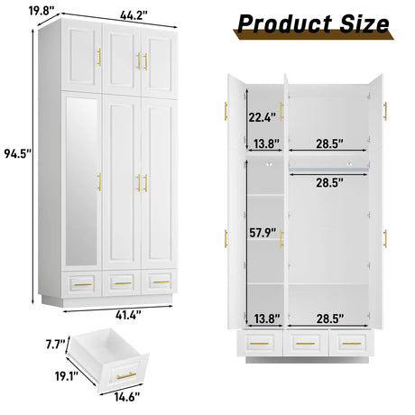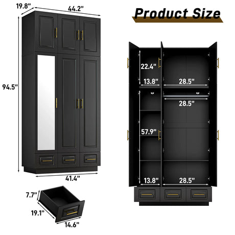 Modern Wooden Wardrobe Armoire Closet With Storage Drawers