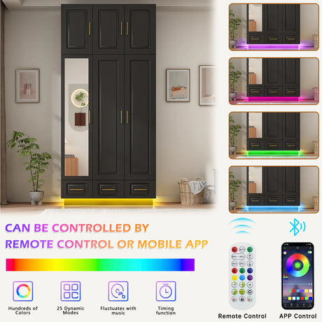 Modern 3-Door Engineered Wood Wardrobe With LED Lights