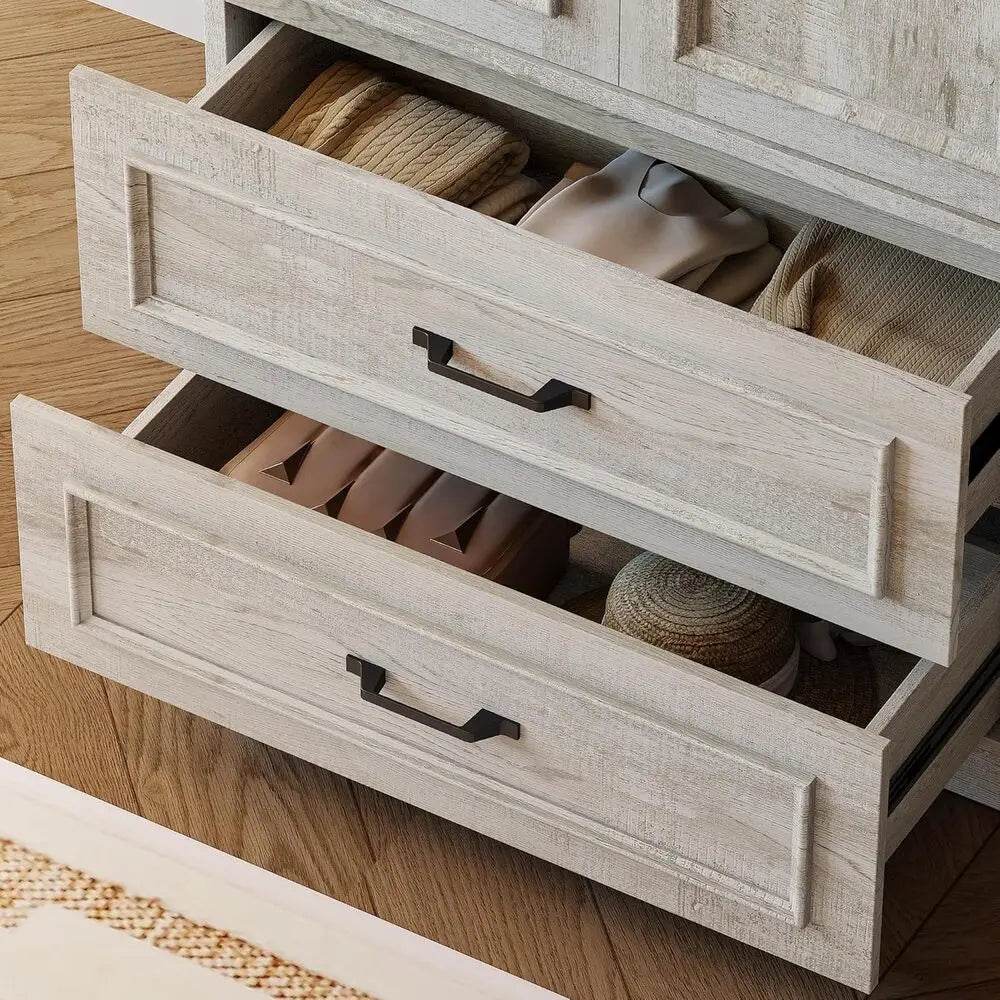 Freestanding Wooden Wardrobe Armoire With Doors Drawers