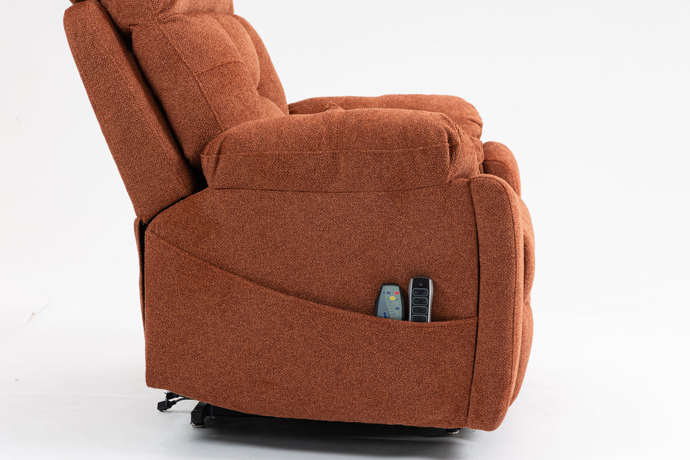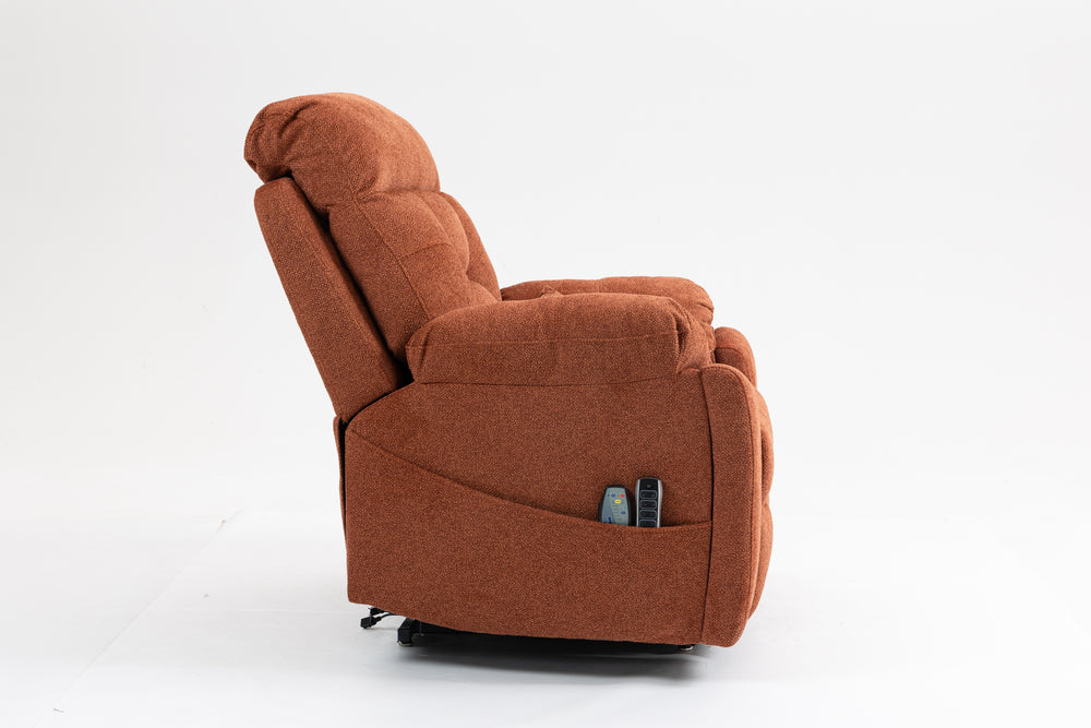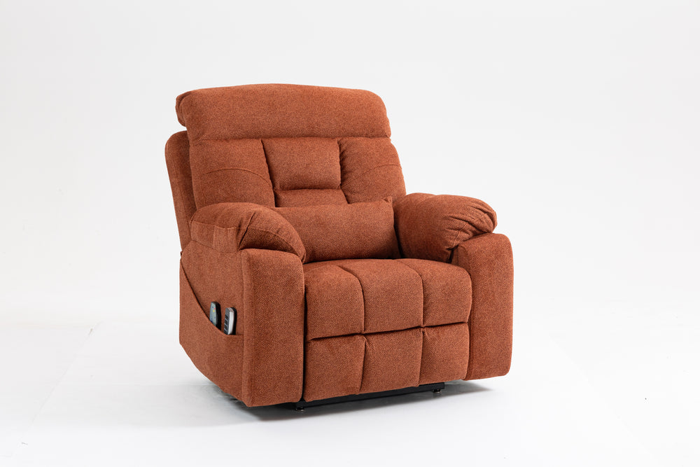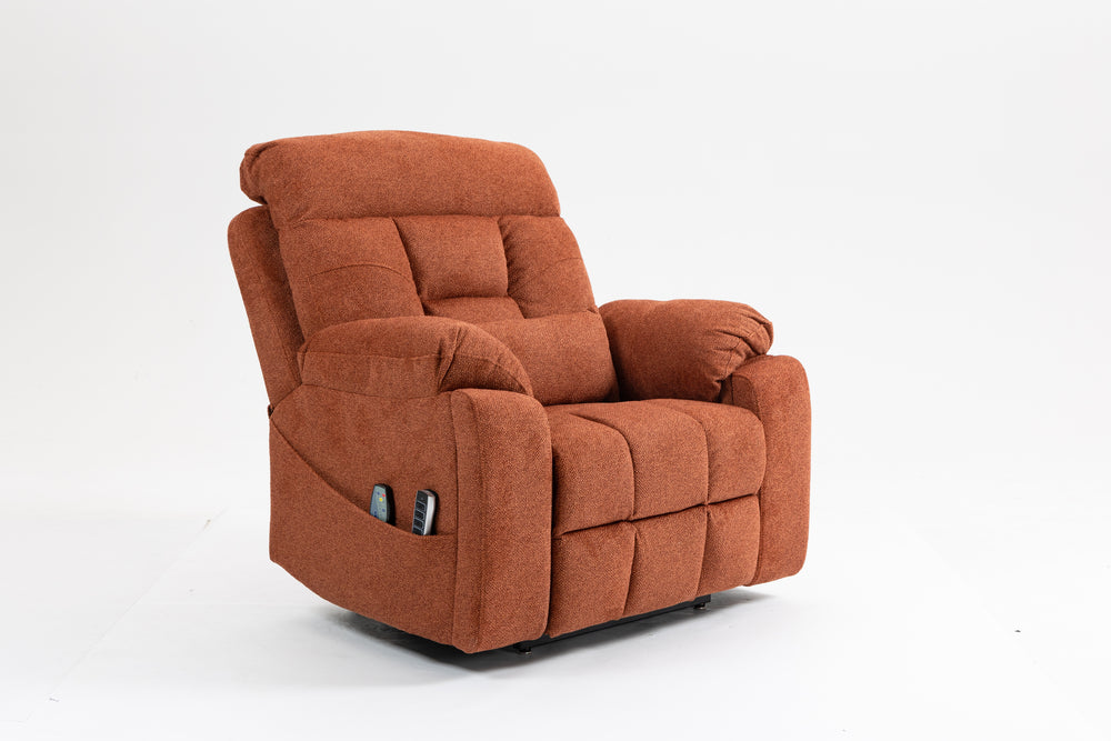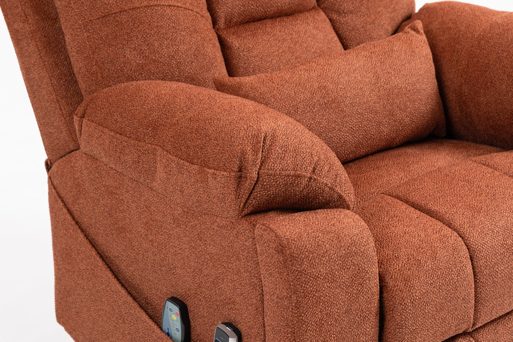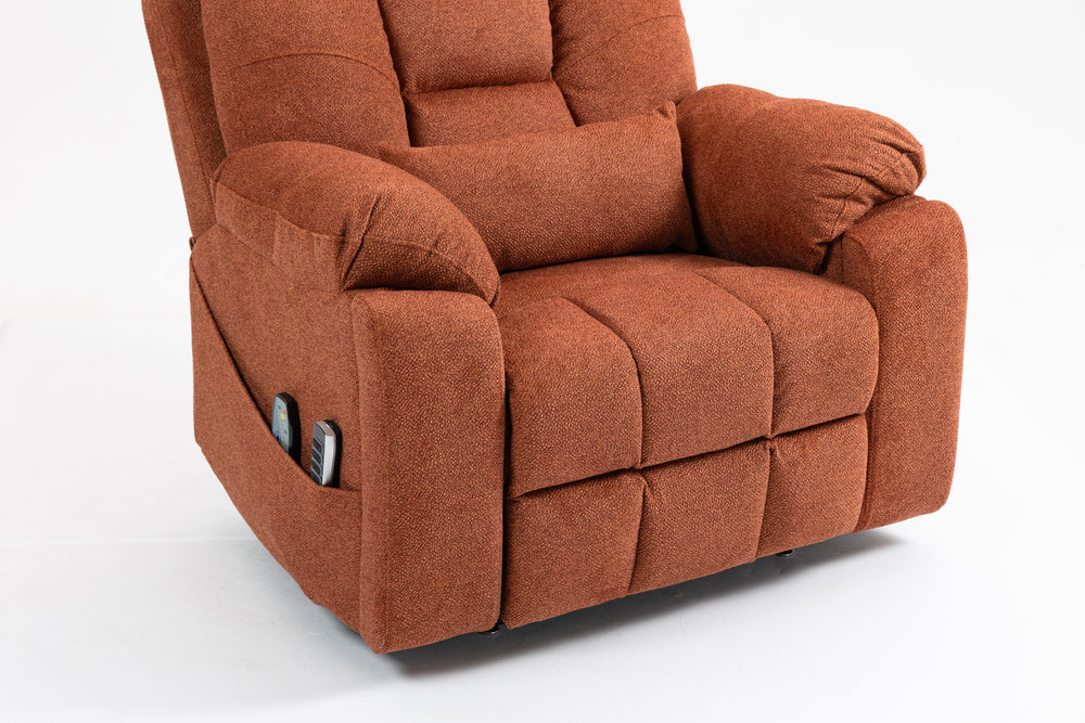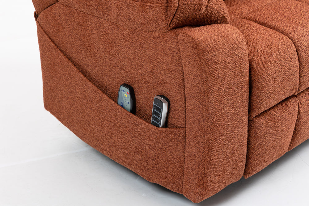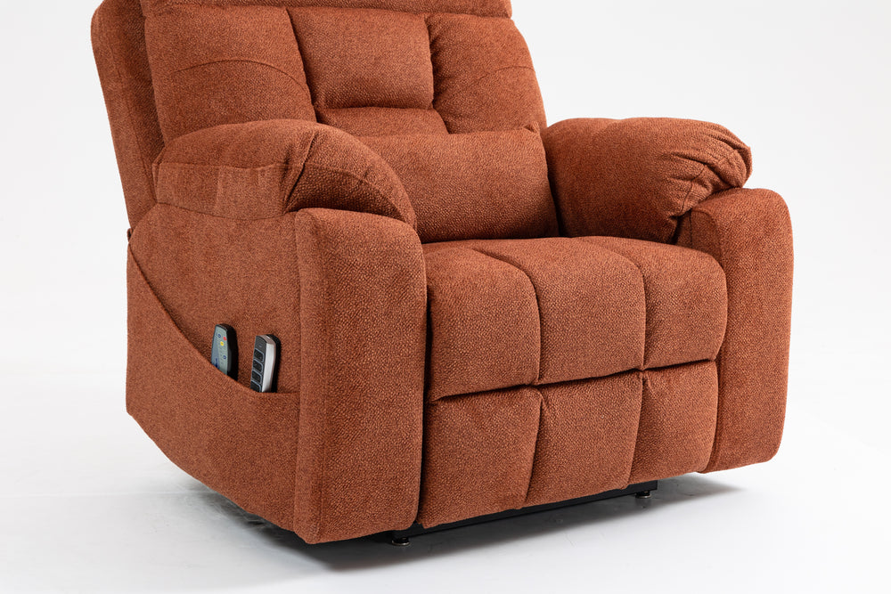 Designed for ultimate relaxation and support, this oversized electric lift chair features plush velvet upholstery and high-density foam cushioning for exceptional comfort. Perfect for seniors and those needing extra space, it reclines fully to 180° allowing you to rest flat for naps or reading. Equipped with four advanced OKIN motors and dual remotes, you can effortlessly adjust the backrest and footrest independently for personalized comfort. The integrated heating targets your lumbar area to soothe muscles, while five massage modes offer tailored relaxation that helps relieve tension. Thoughtfully crafted for durability, this heavy-duty recliner supports up to 400 lbs and features convenient dual cup holders for drinks within reach. Elevate your home relaxation experience today with this versatile, feature-rich electric sofa.
